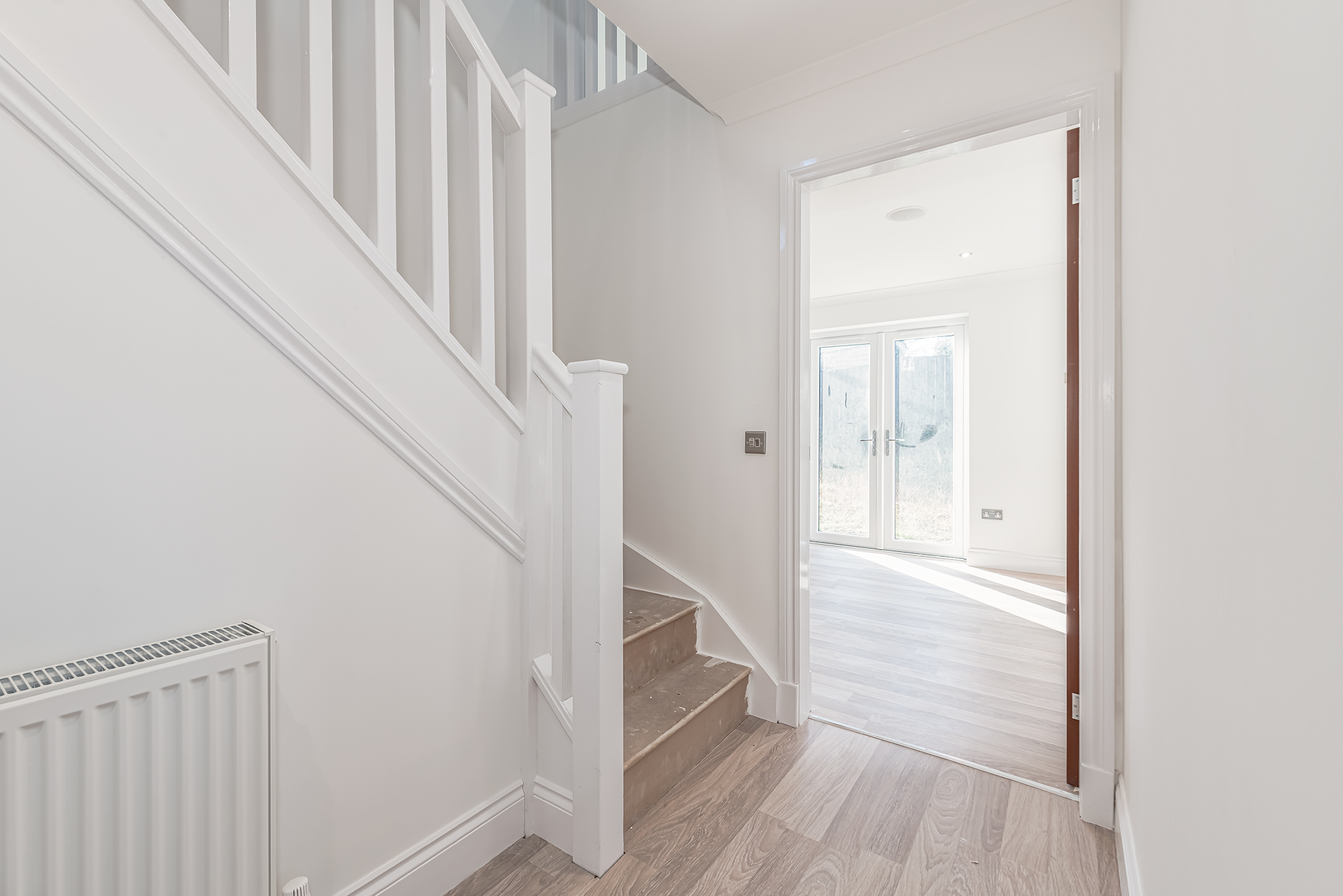 Upstairs boasts four generously proportioned double bedrooms, including a master suite with a striking Juliette balcony and an elegant en-suite shower room. A luxurious family bathroom completes the upper-level accommodation.