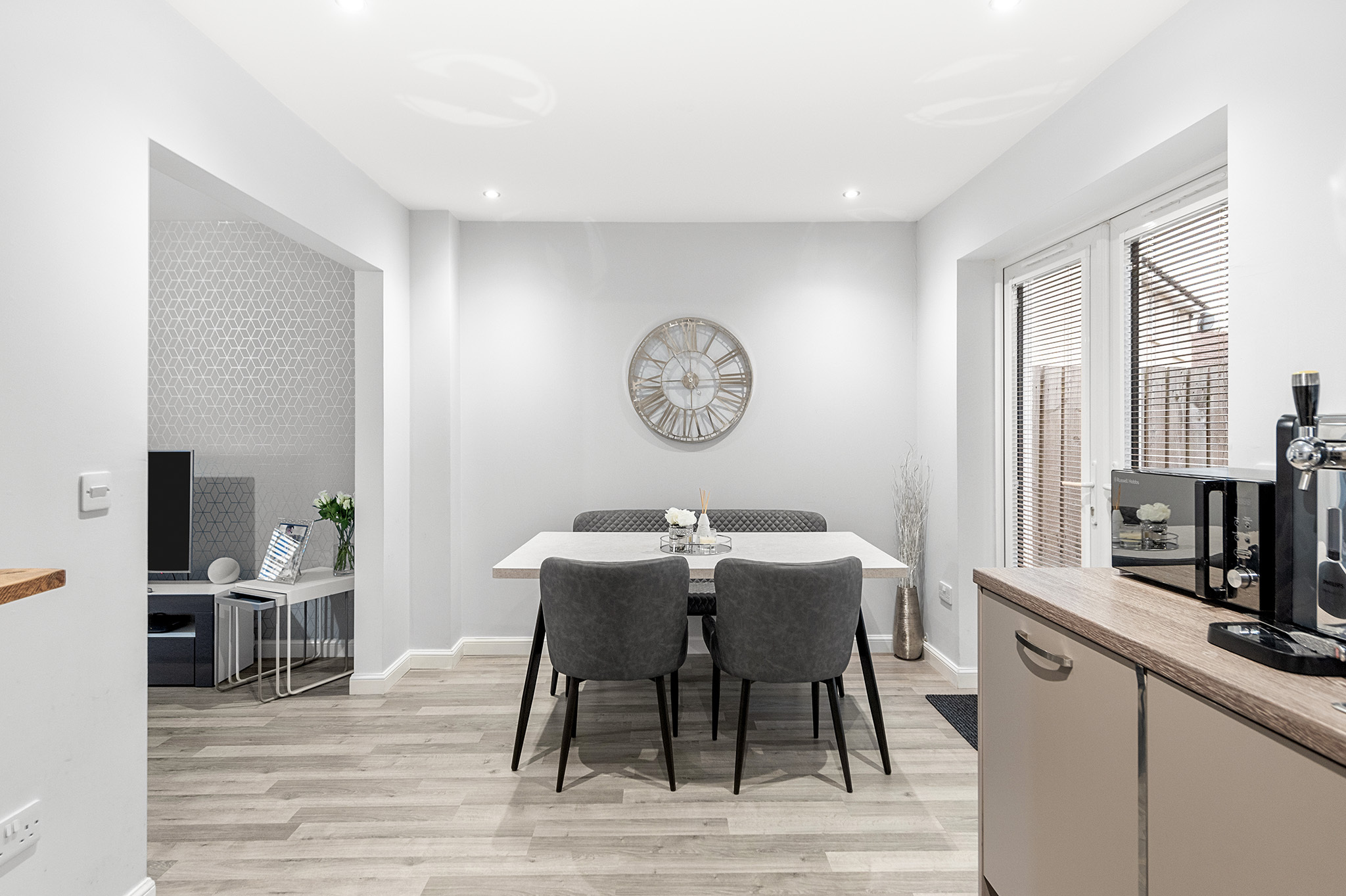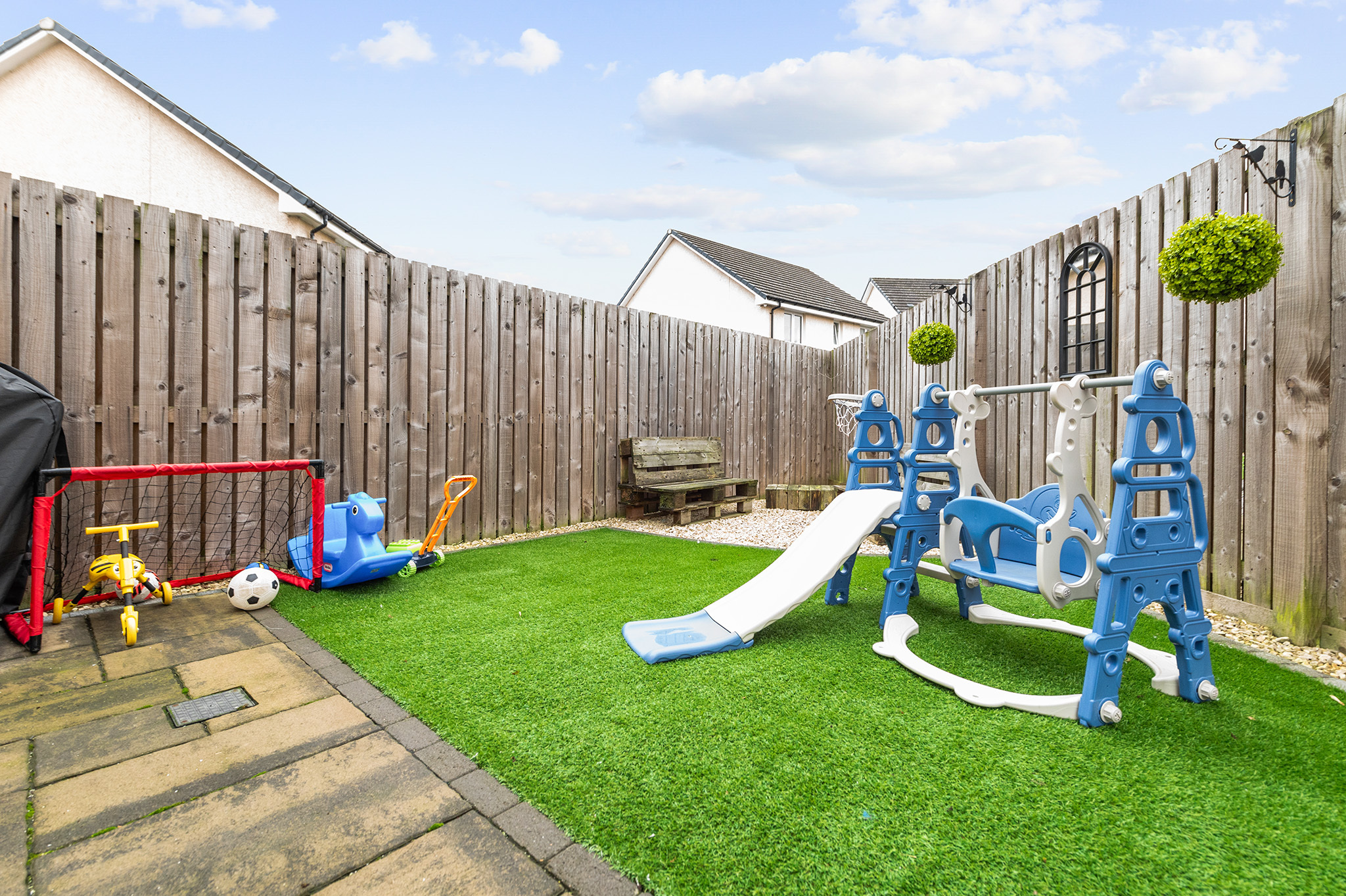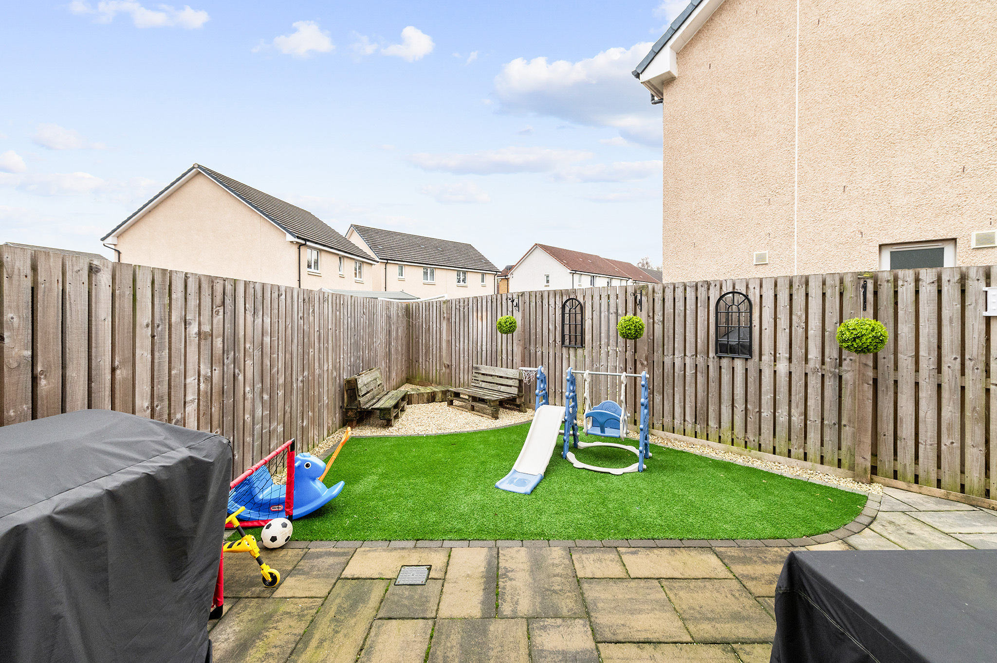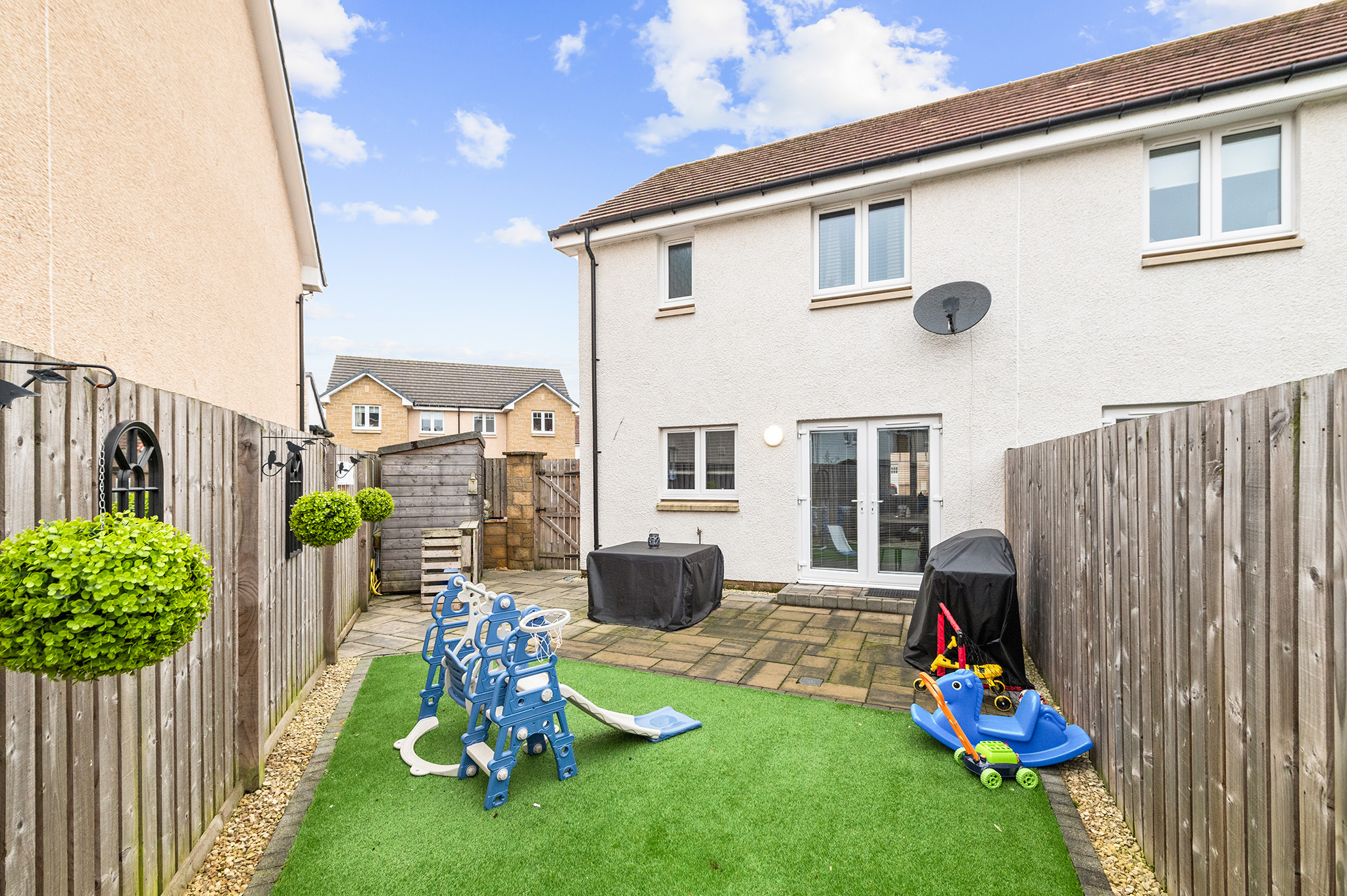 Externally, the home includes a spacious driveway with room for two cars and a fully enclosed rear garden, featuring low-maintenance artificial turf and a contemporary patio area, perfect for entertaining, socialising, or enjoying peaceful downtime.