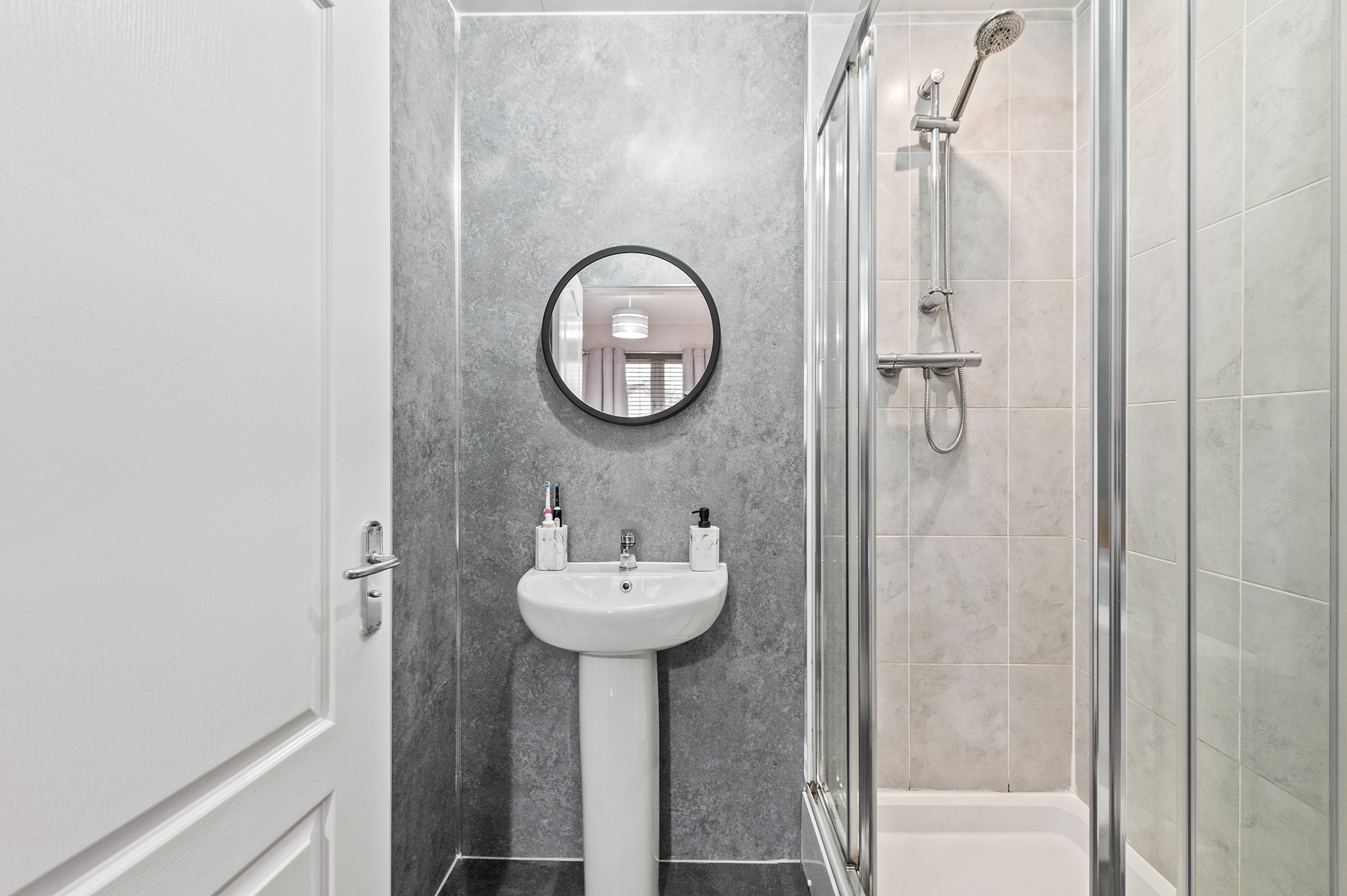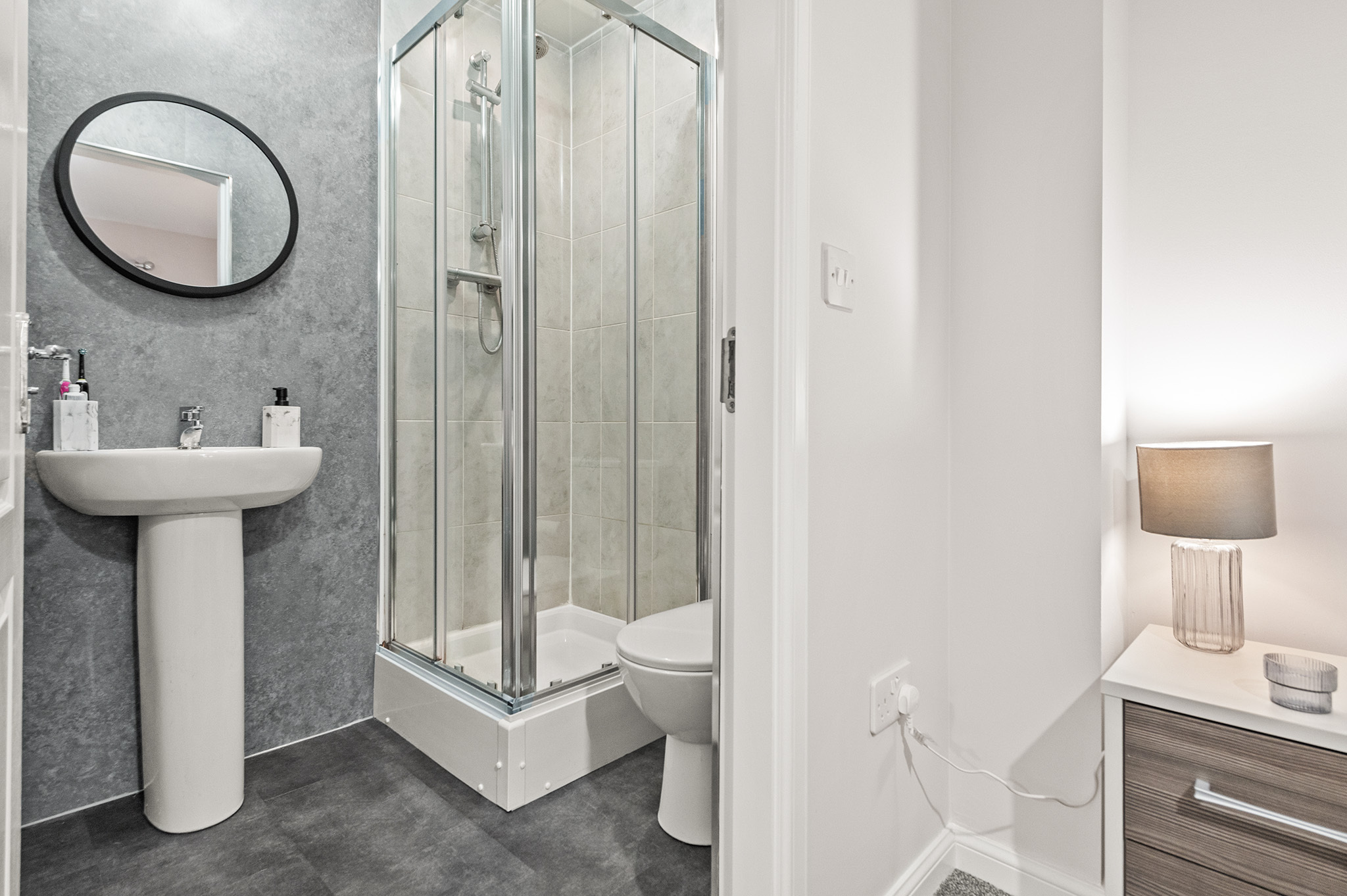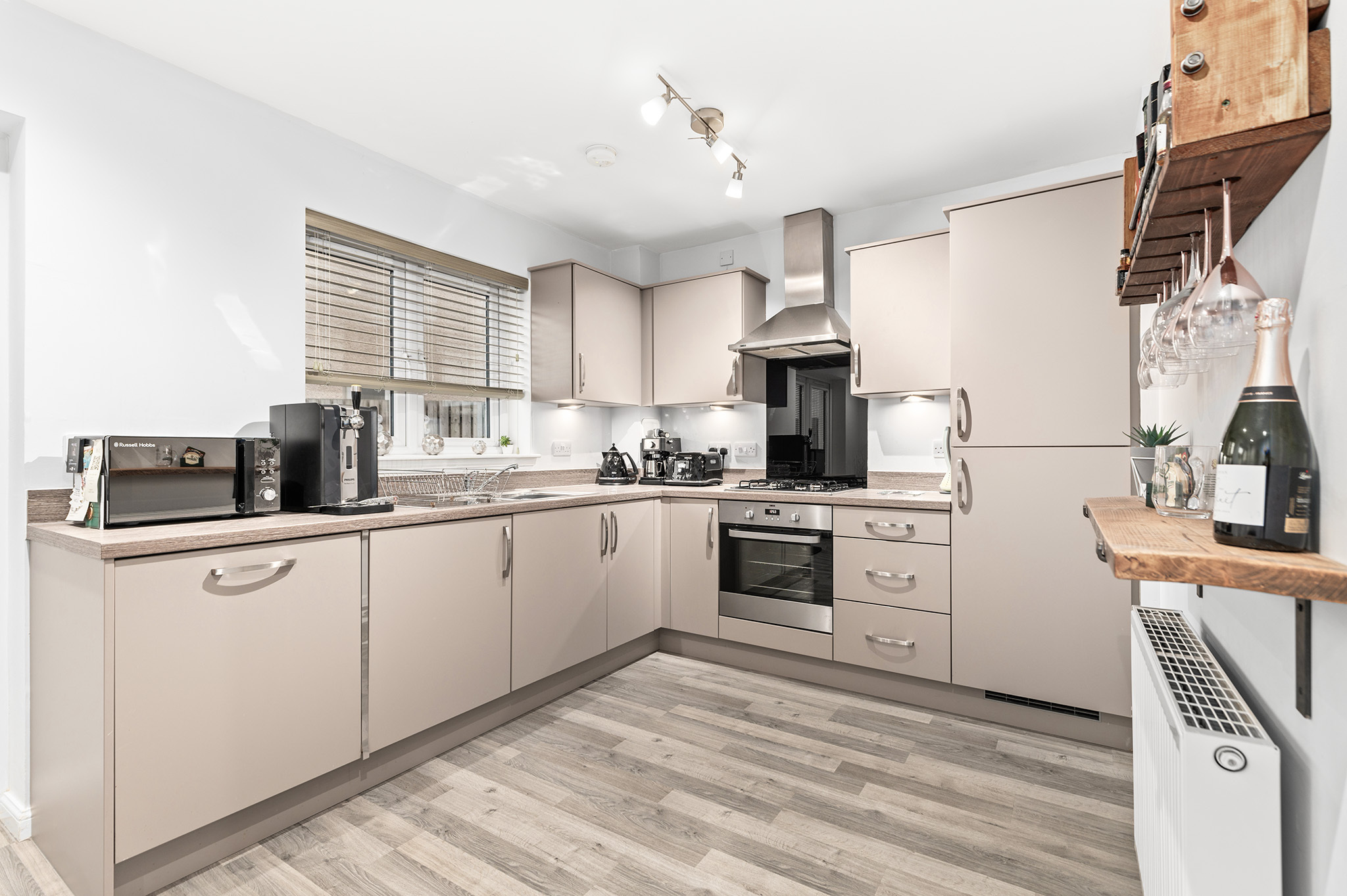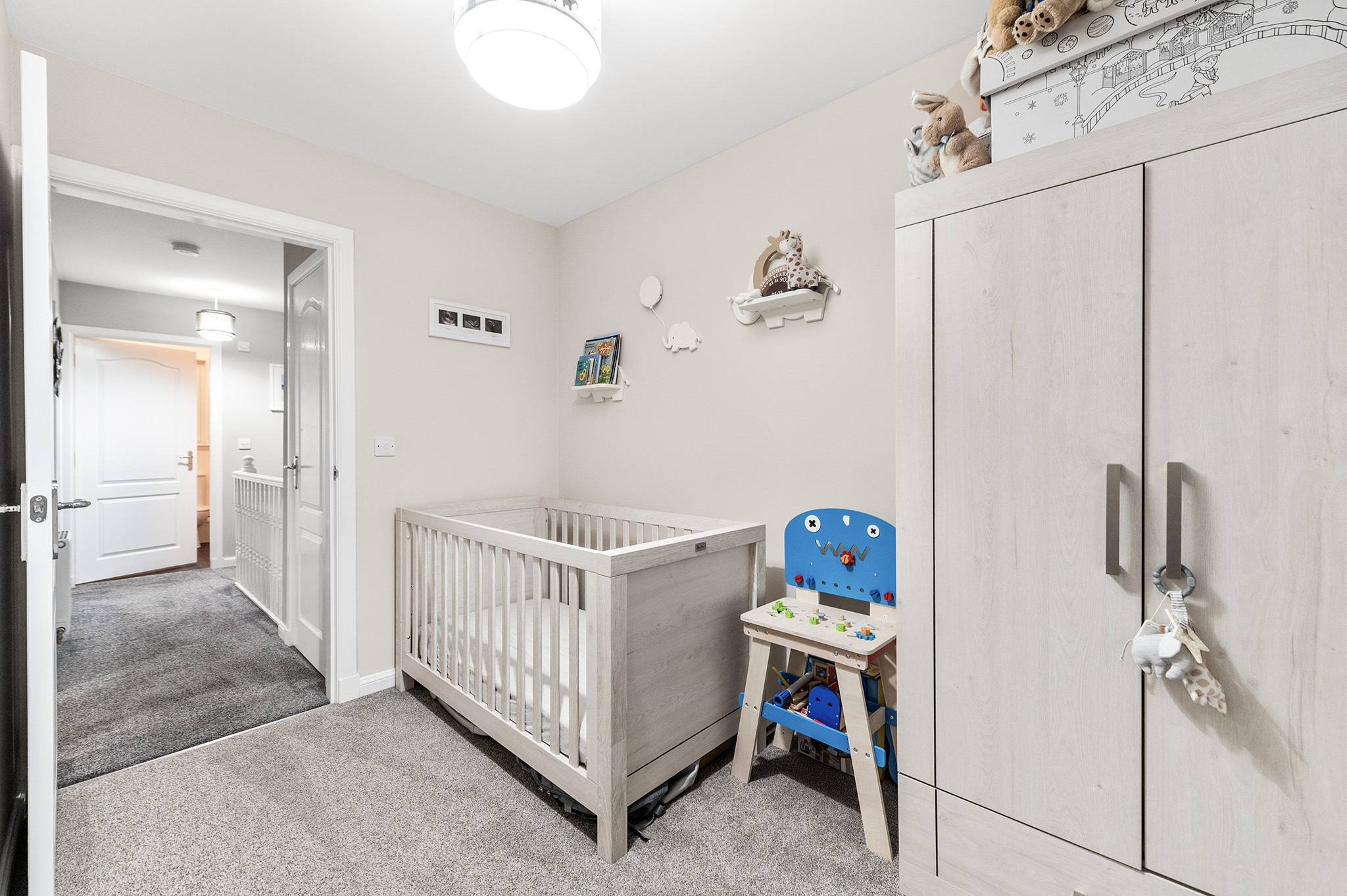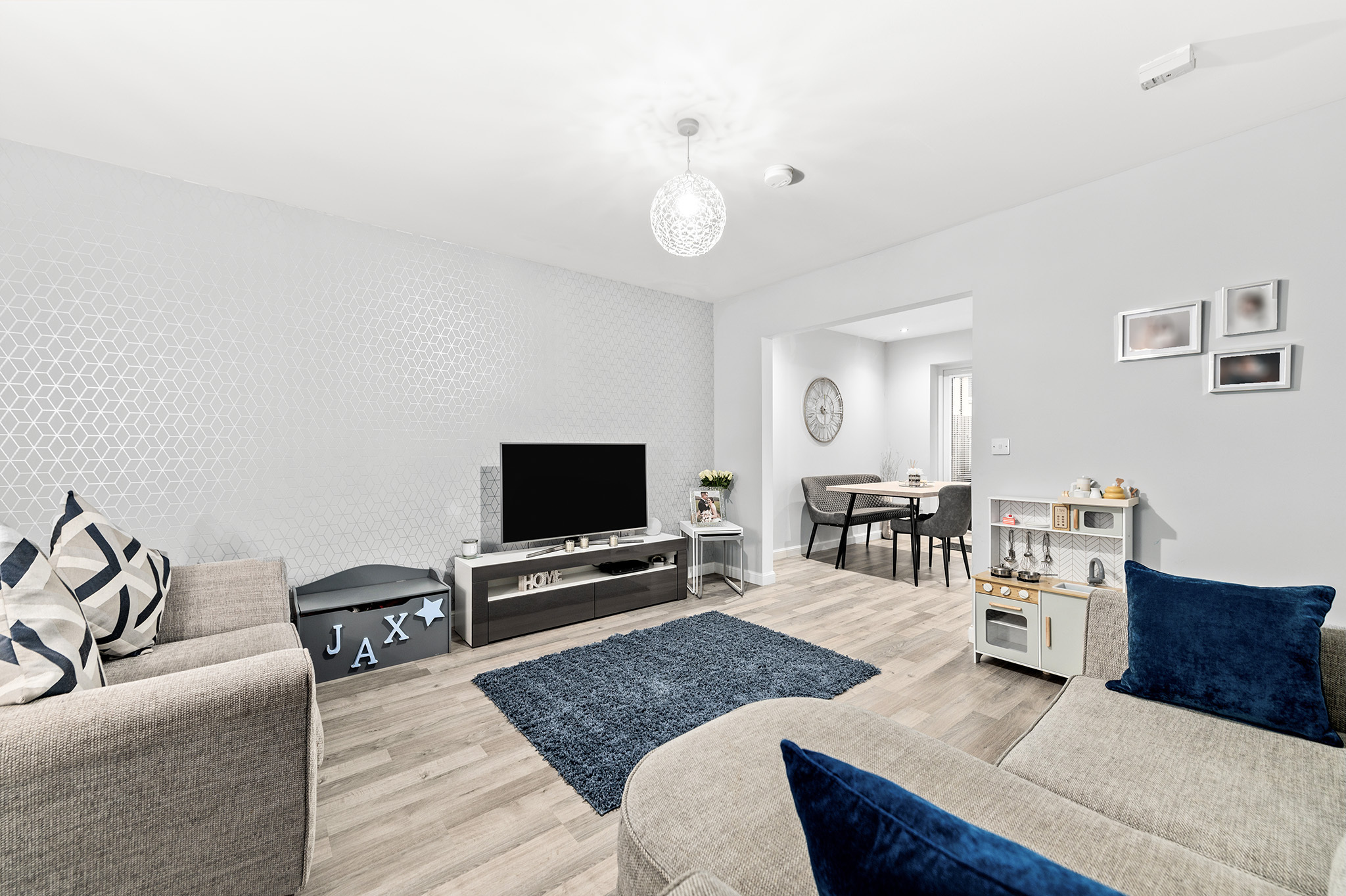 Upstairs boasts three spacious bedrooms, including a primary bedroom with an elegant en-suite shower room and fitted storage. Bedroom two also benefits from built-in storage, while a luxurious family bathroom completes the upper-level accommodation.