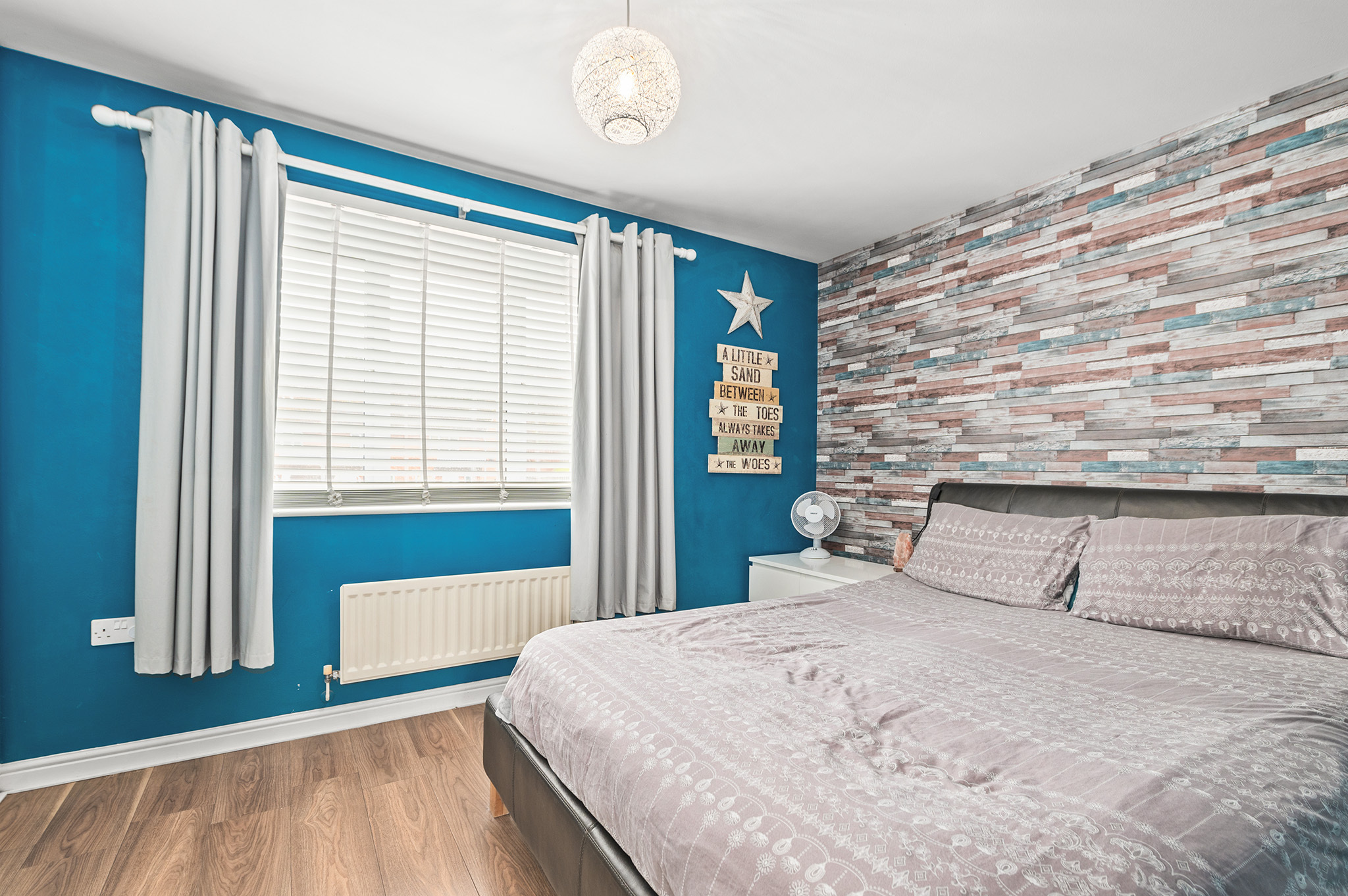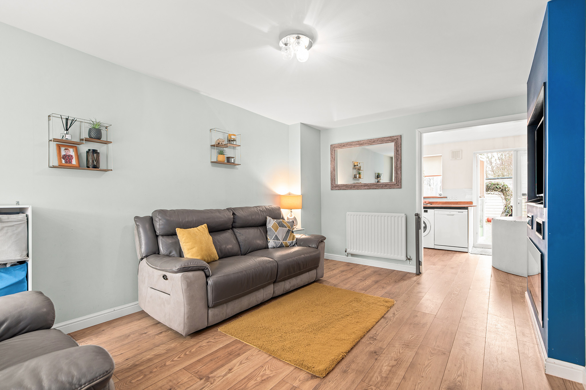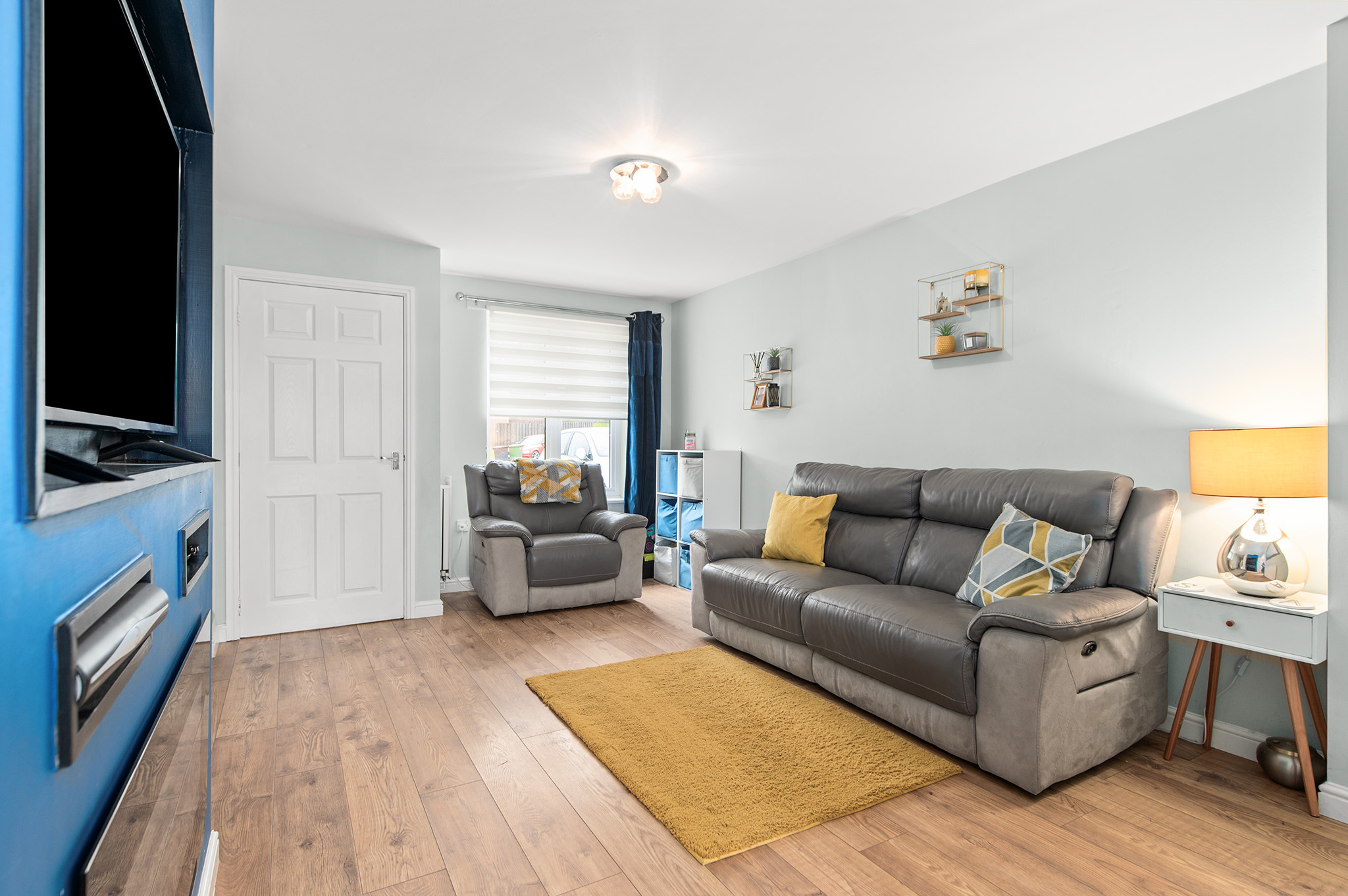 The home welcomes you with a bright and spacious lounge, featuring a stylish media wall. The well-appointed kitchen diner provides ample worktop and storage space, with French doors leading directly to the rear garden. A convenient WC and additional storage complete the ground floor.