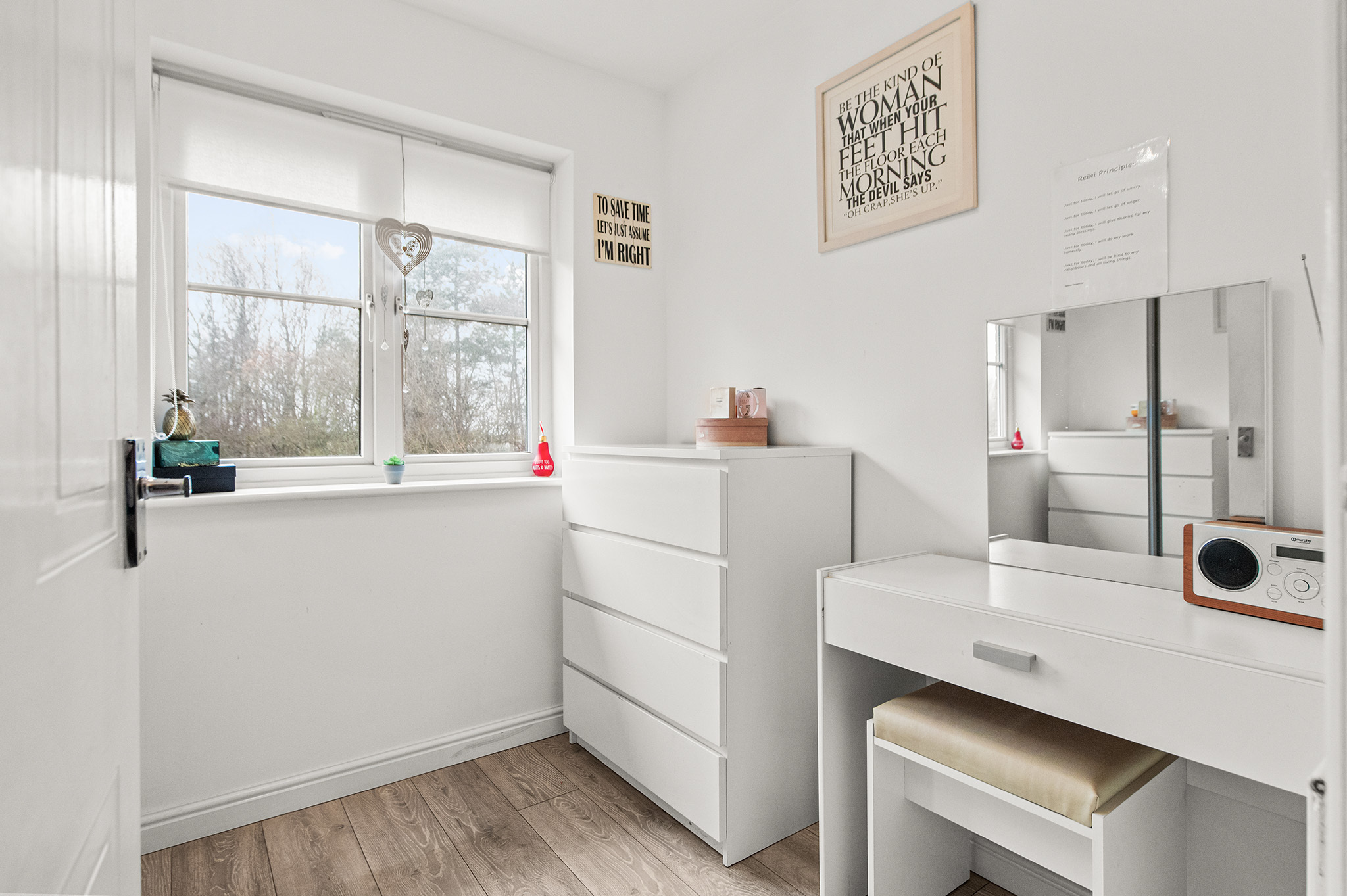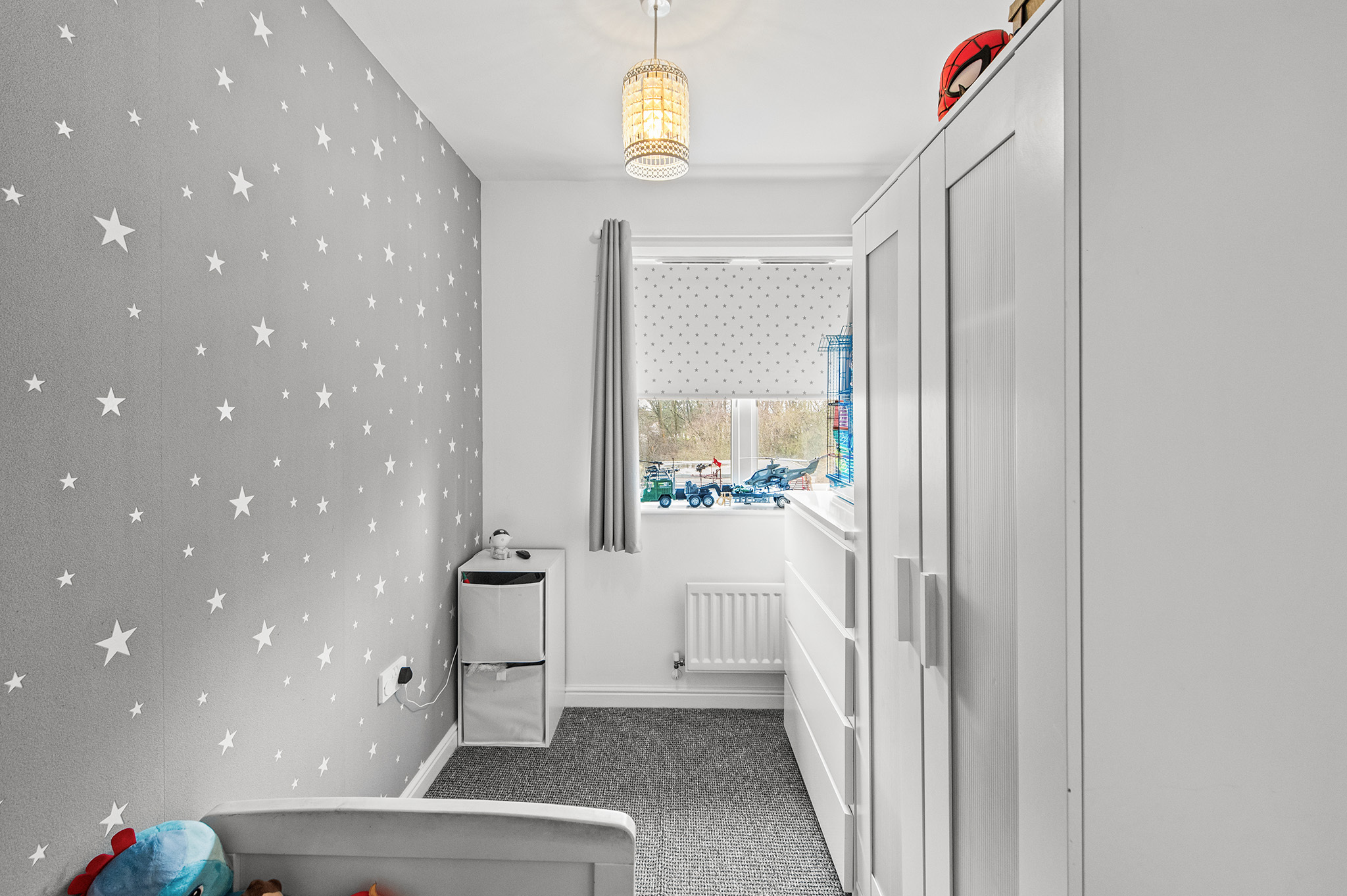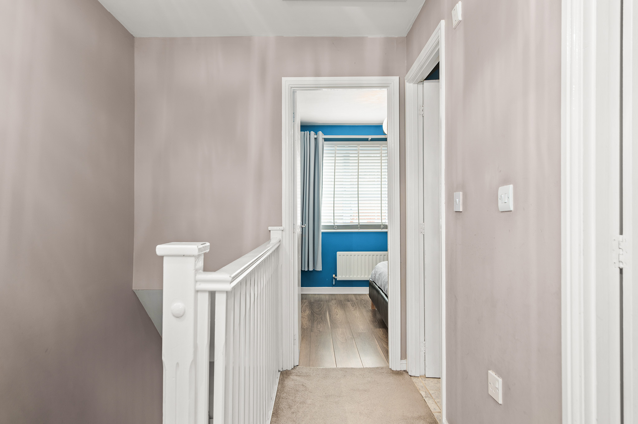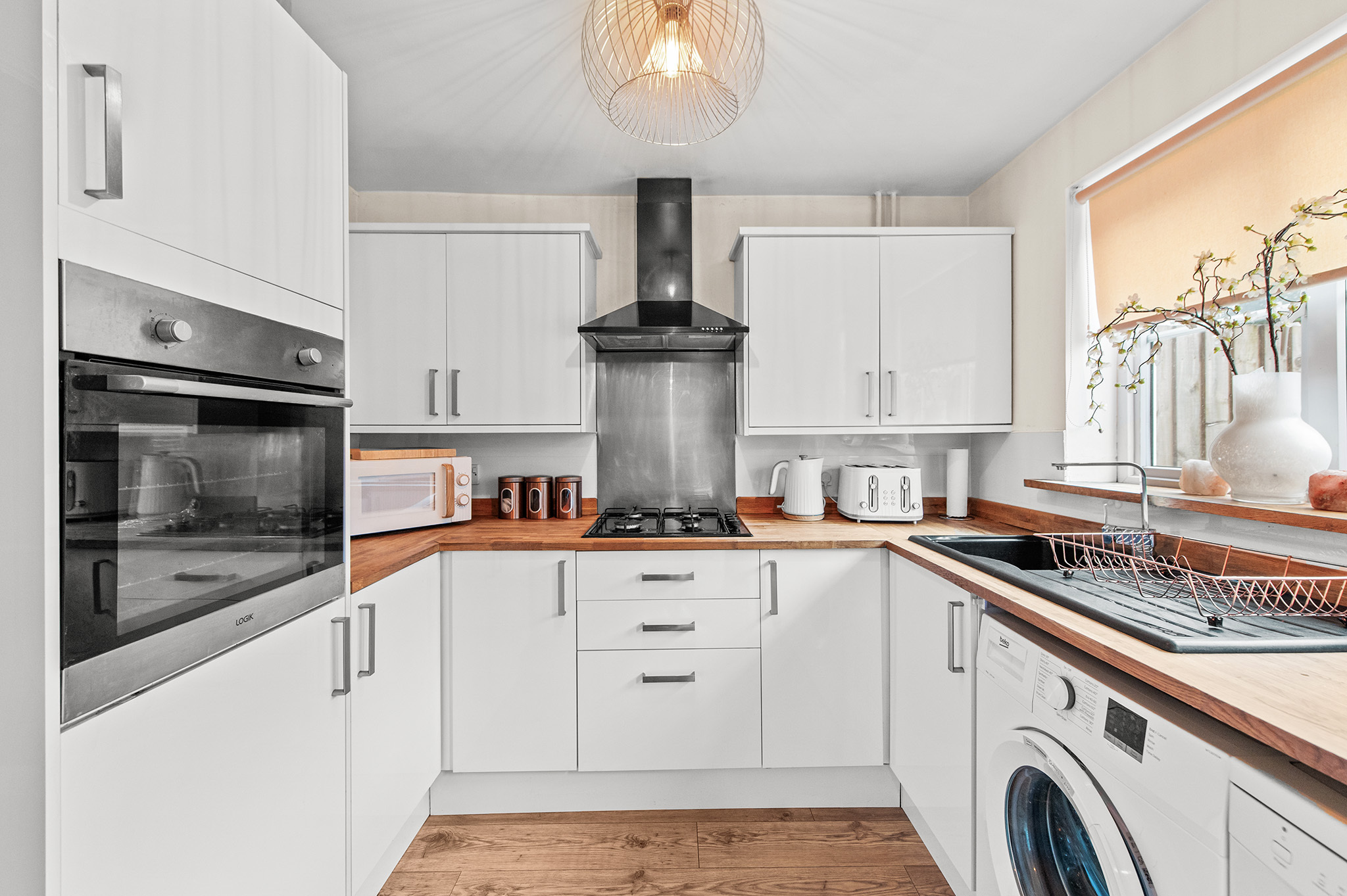 The home welcomes you with a bright and spacious lounge, featuring a stylish media wall. The well-appointed kitchen diner provides ample worktop and storage space, with French doors leading directly to the rear garden. A convenient WC and additional storage complete the ground floor.