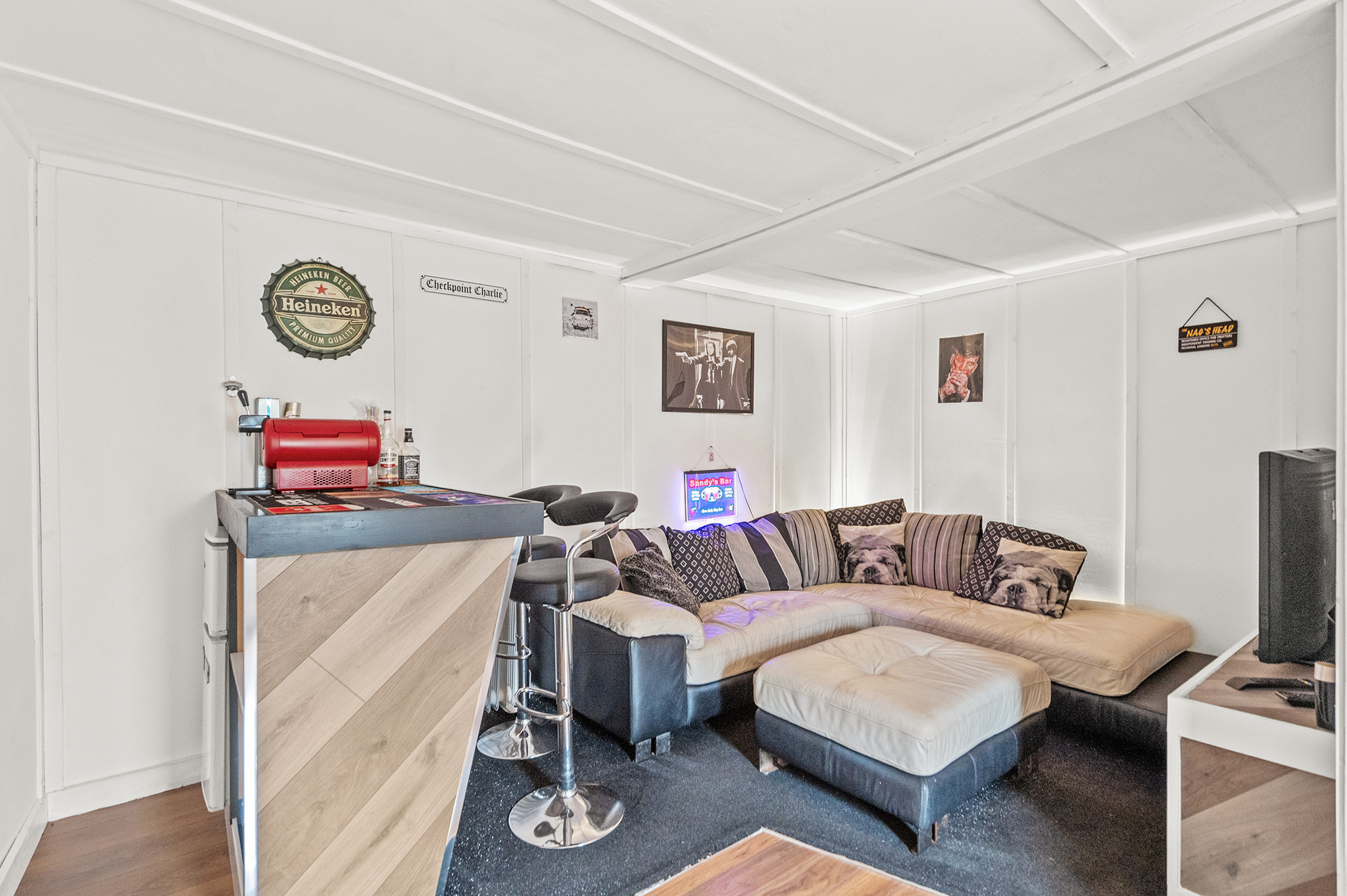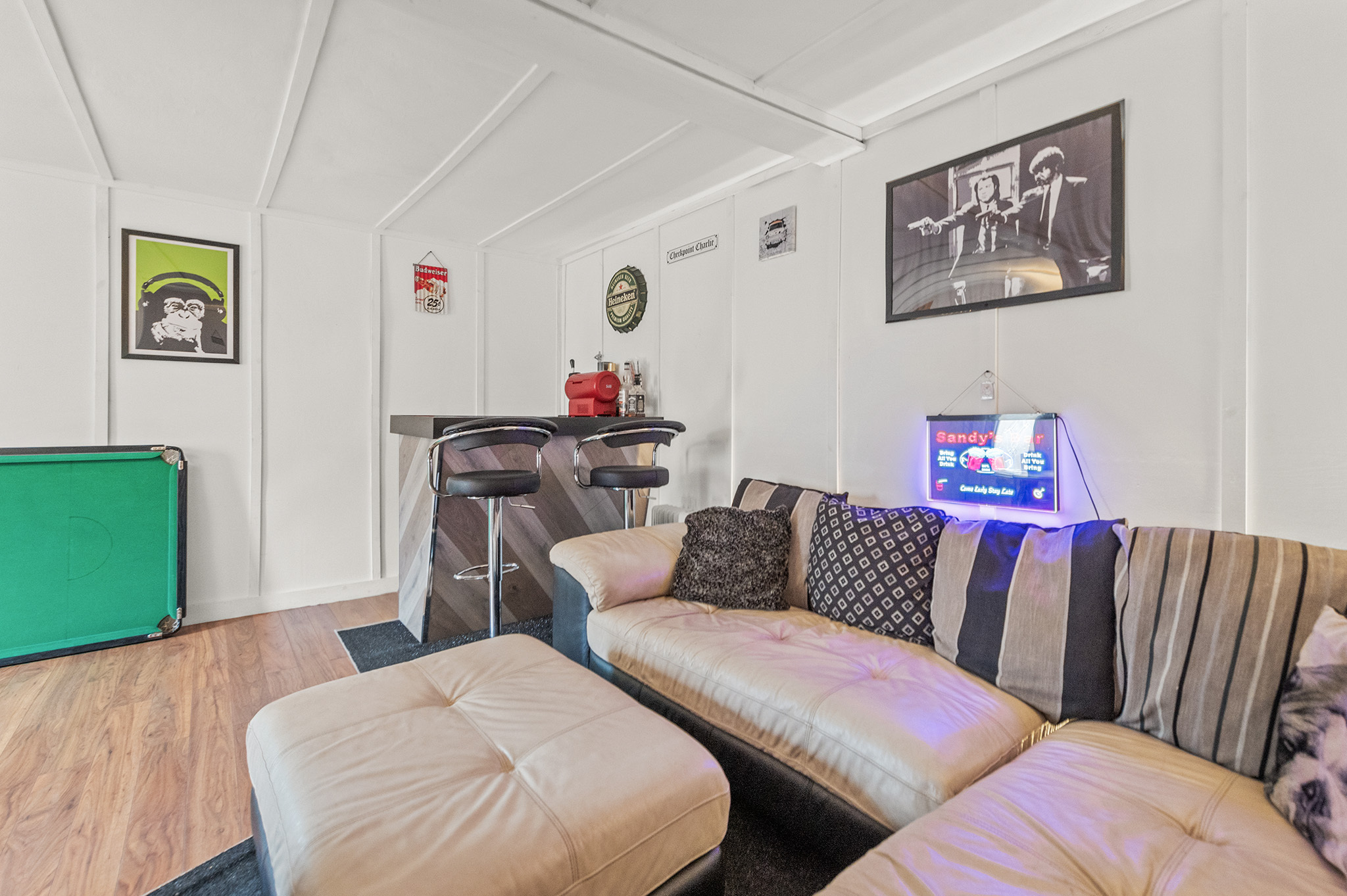 This home benefits from a generous rear garden, perfect for outdoor living. A standout feature is the excellent outbuilding, which is fully insulated and currently utilised as a bar. The exceptionally long driveway provides ample parking for multiple vehicles.