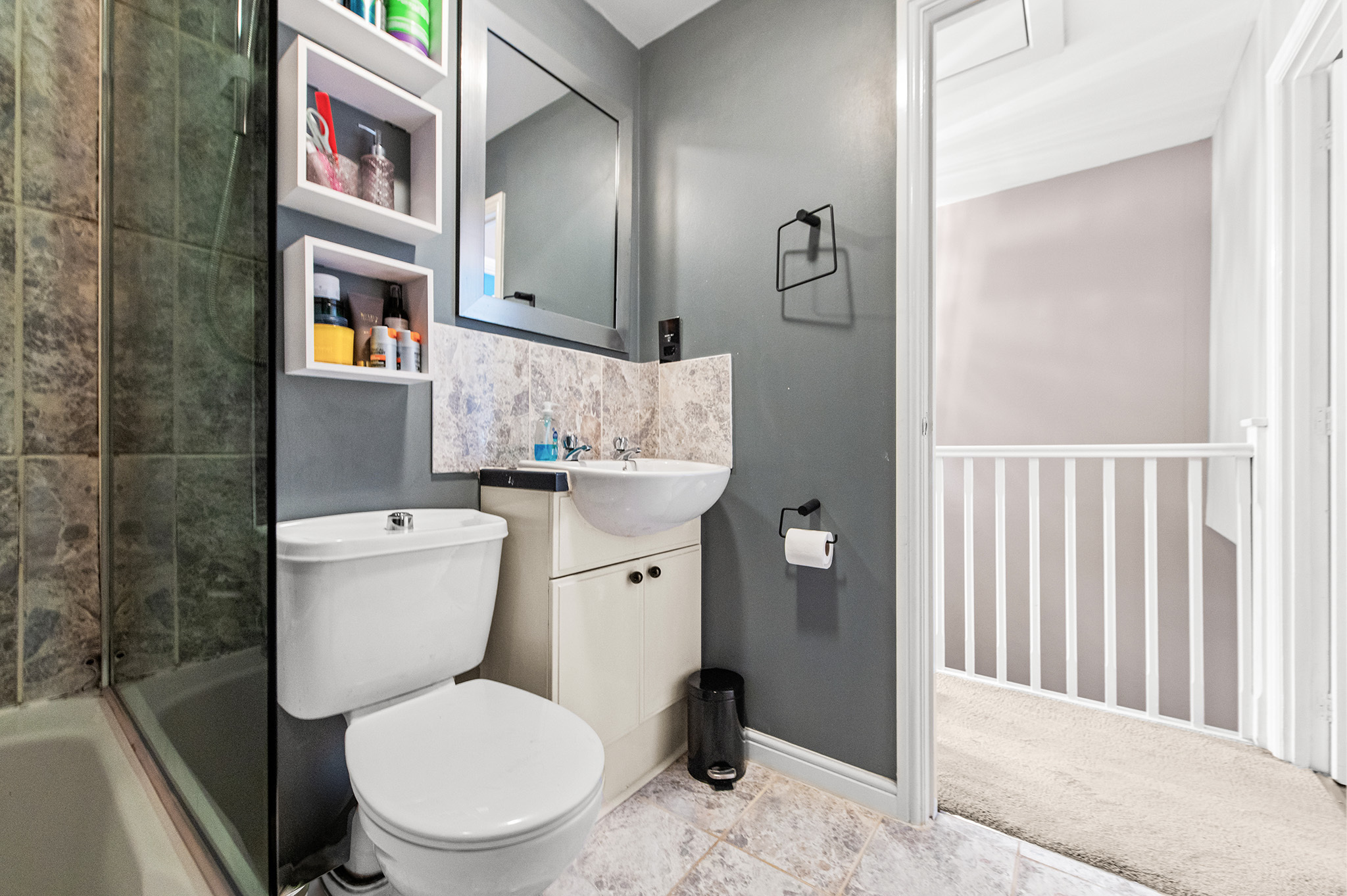 Upstairs, the property boasts three well-proportioned bedrooms, including a spacious primary bedroom. The family bathroom serves the upper level, offering a modern and functional space.