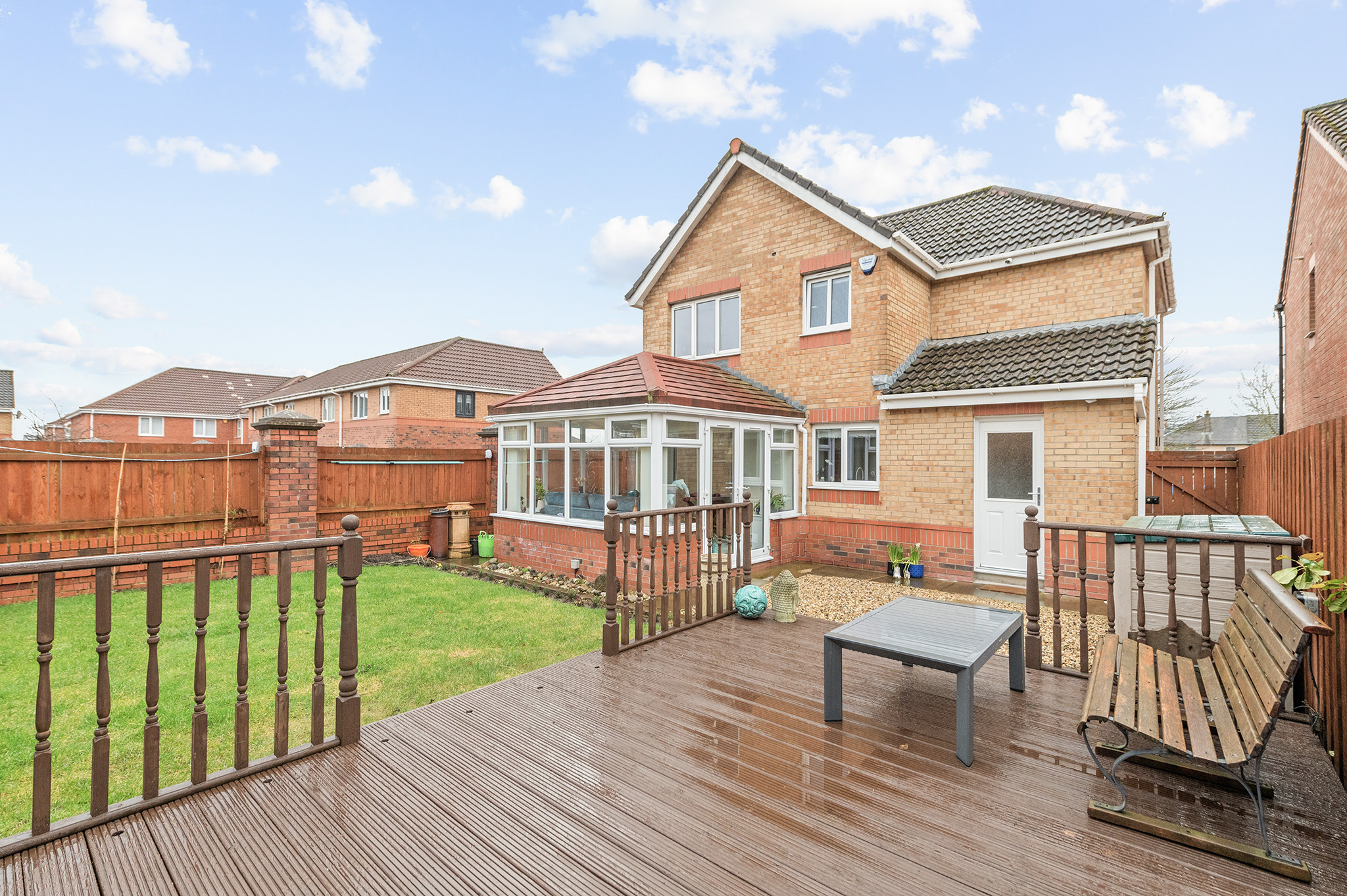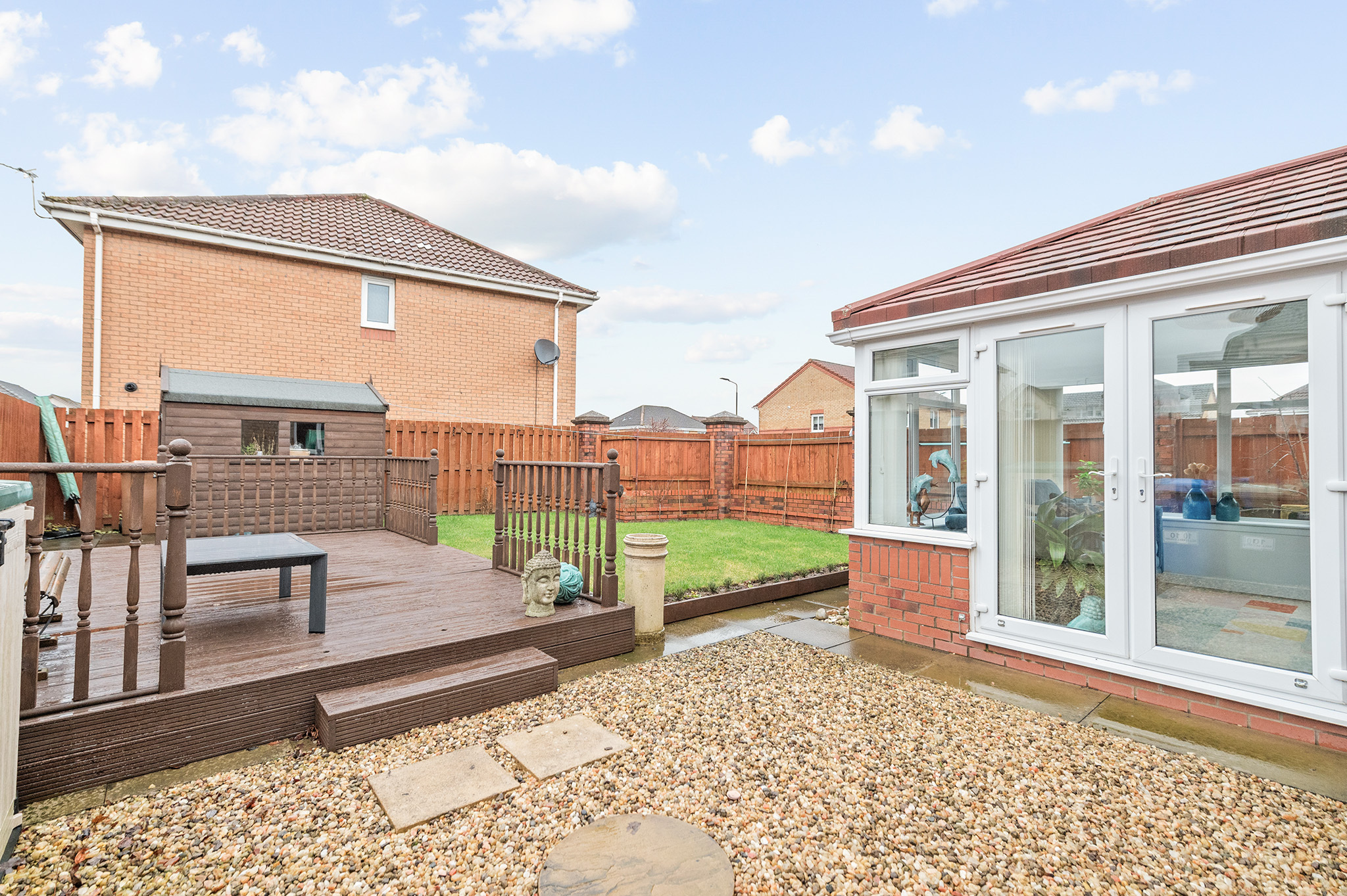 Beautifully maintained garden, featuring a lawn, patio, and decking area, perfect for outdoor relaxation and entertaining.