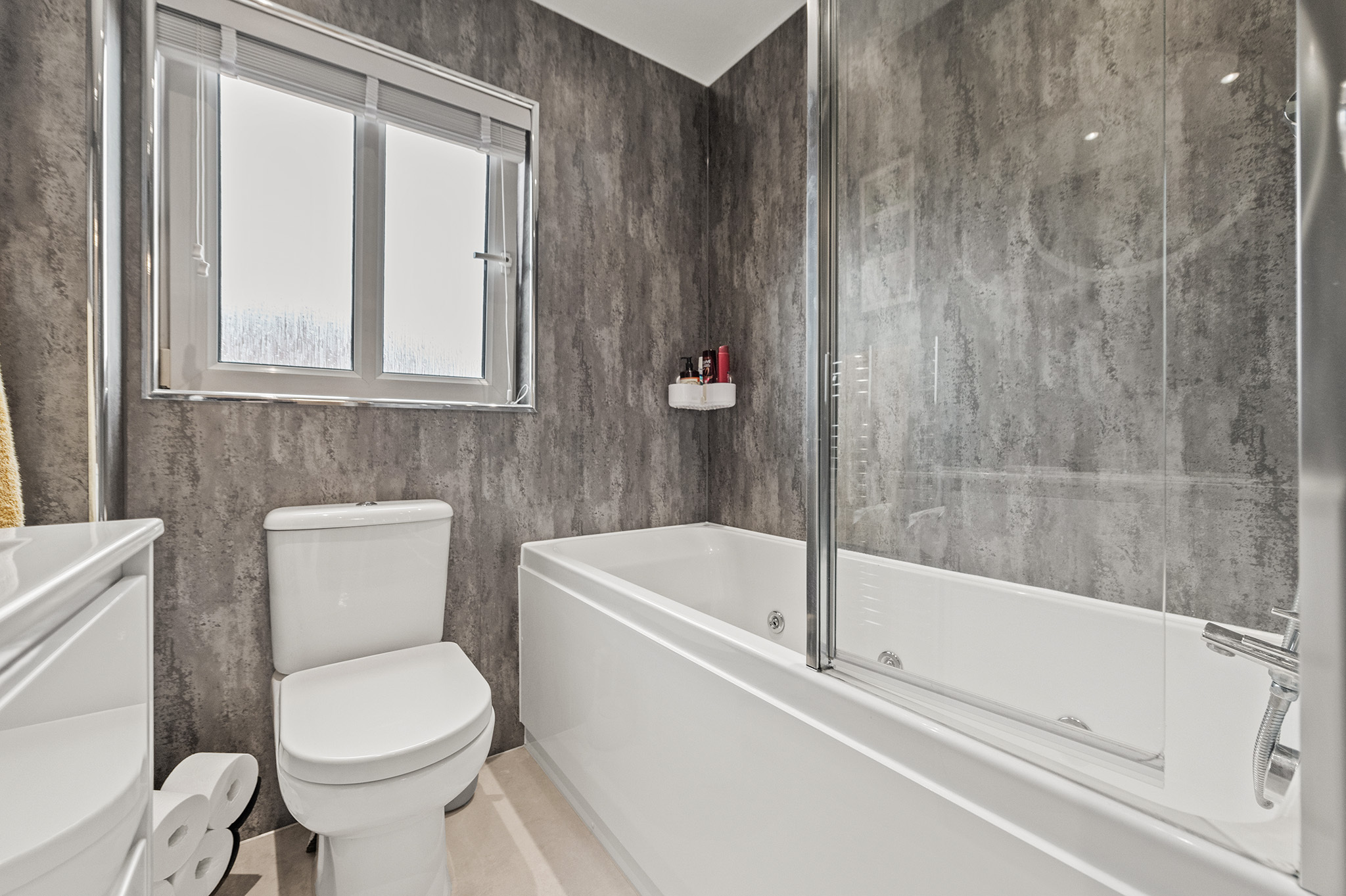 Modern family bathroom with high-spec fixtures and fittings.