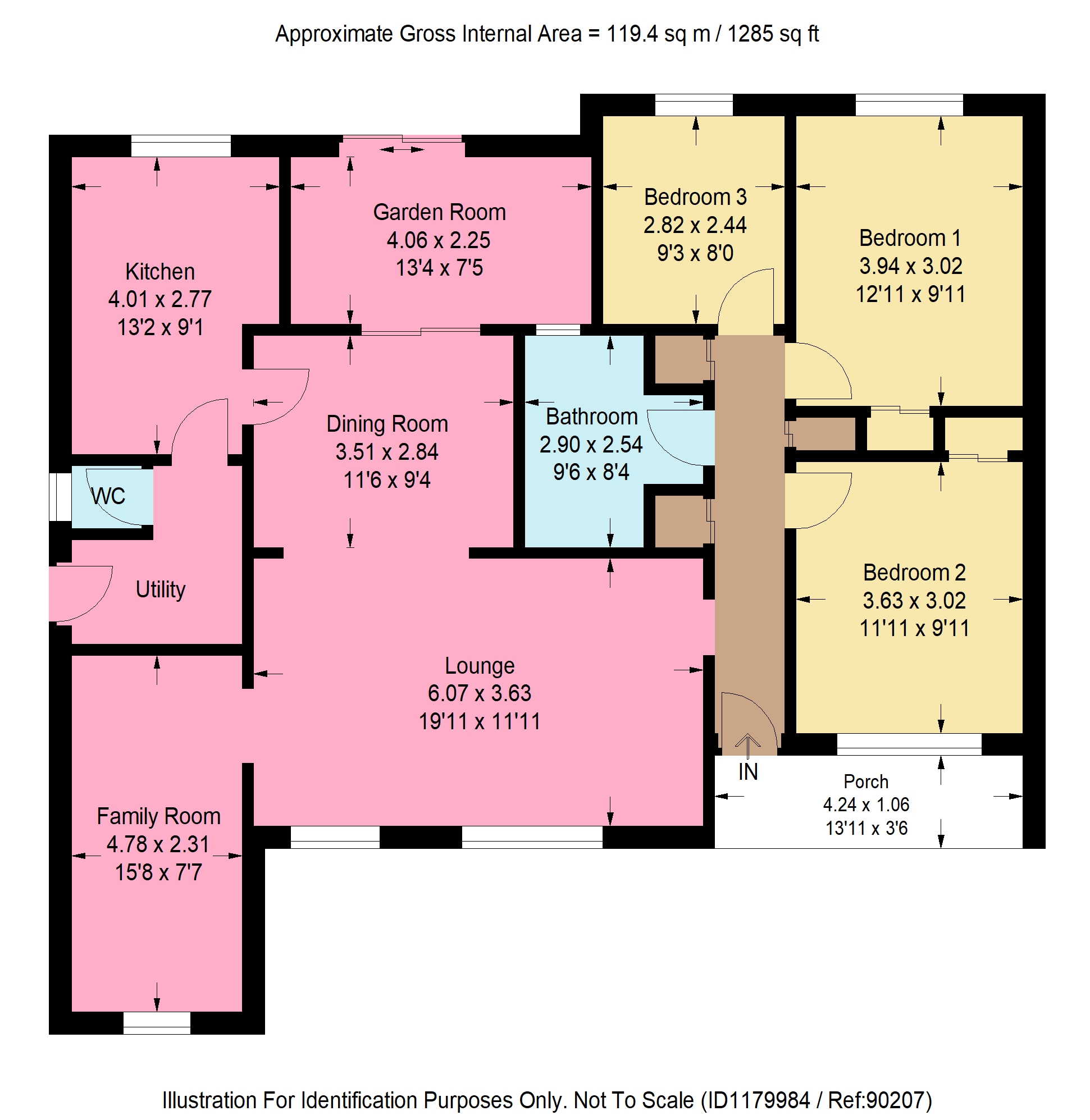 Three well-proportioned bedrooms plus additional family room/bedroom
