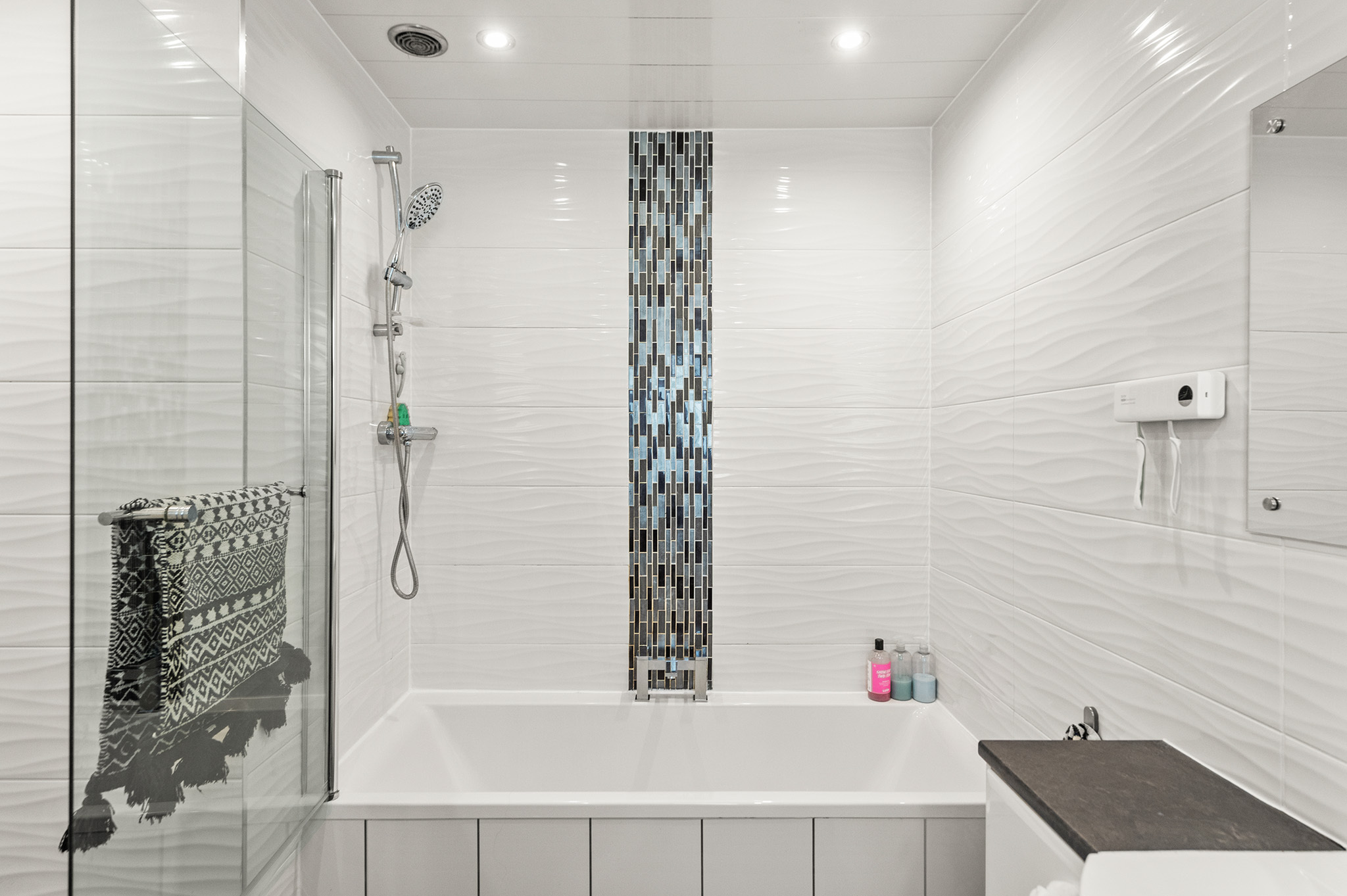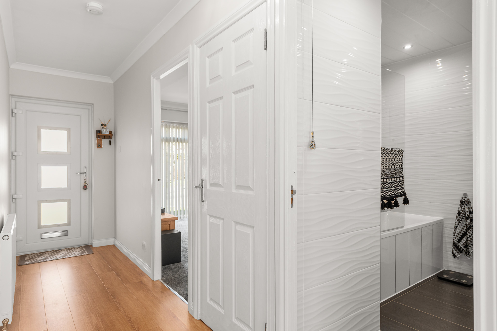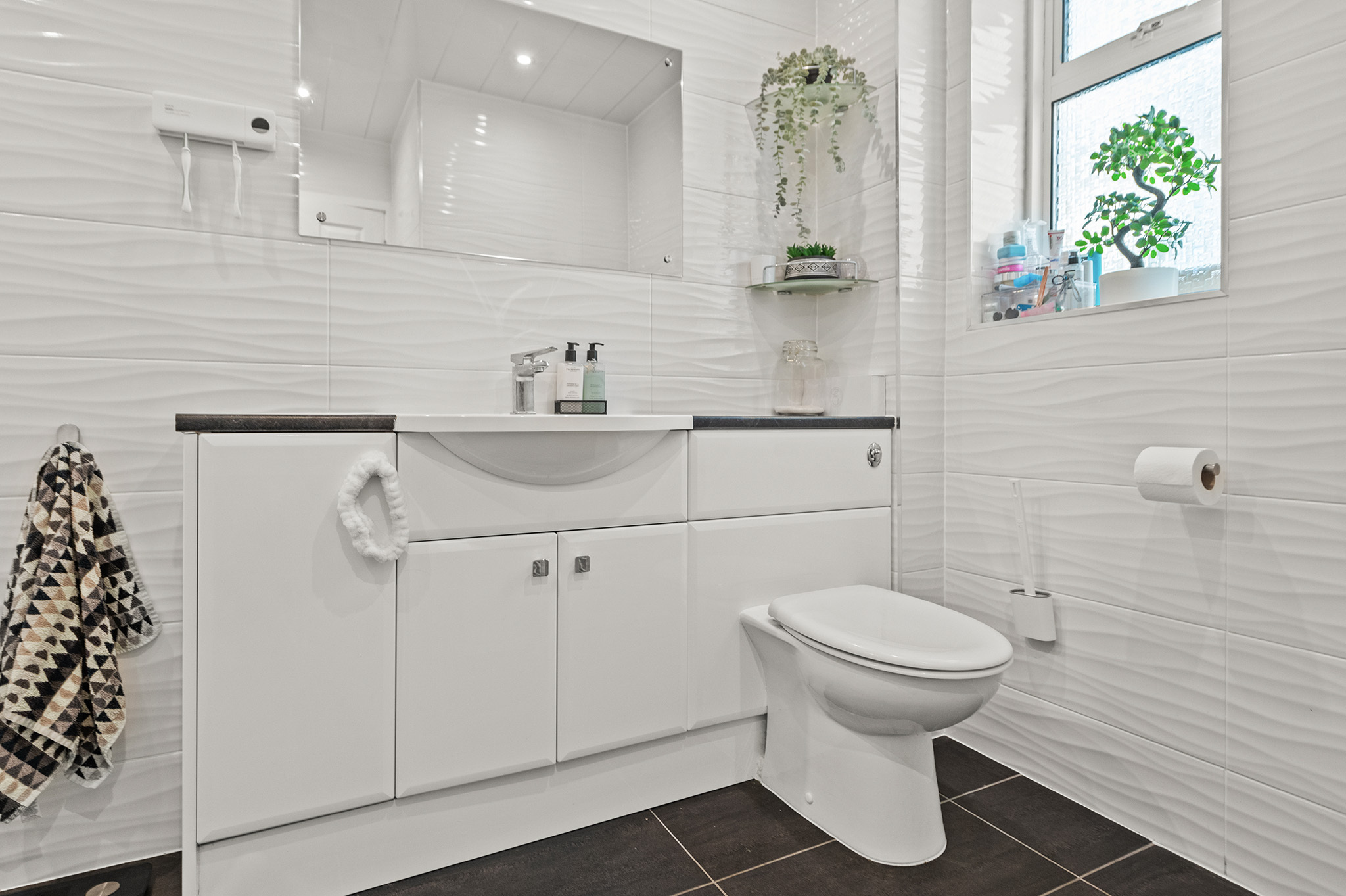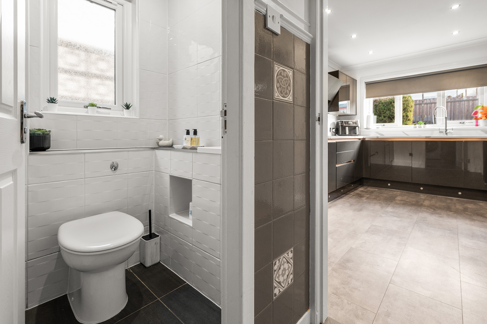 Stylish, fully tiled family bathroom & additional WC