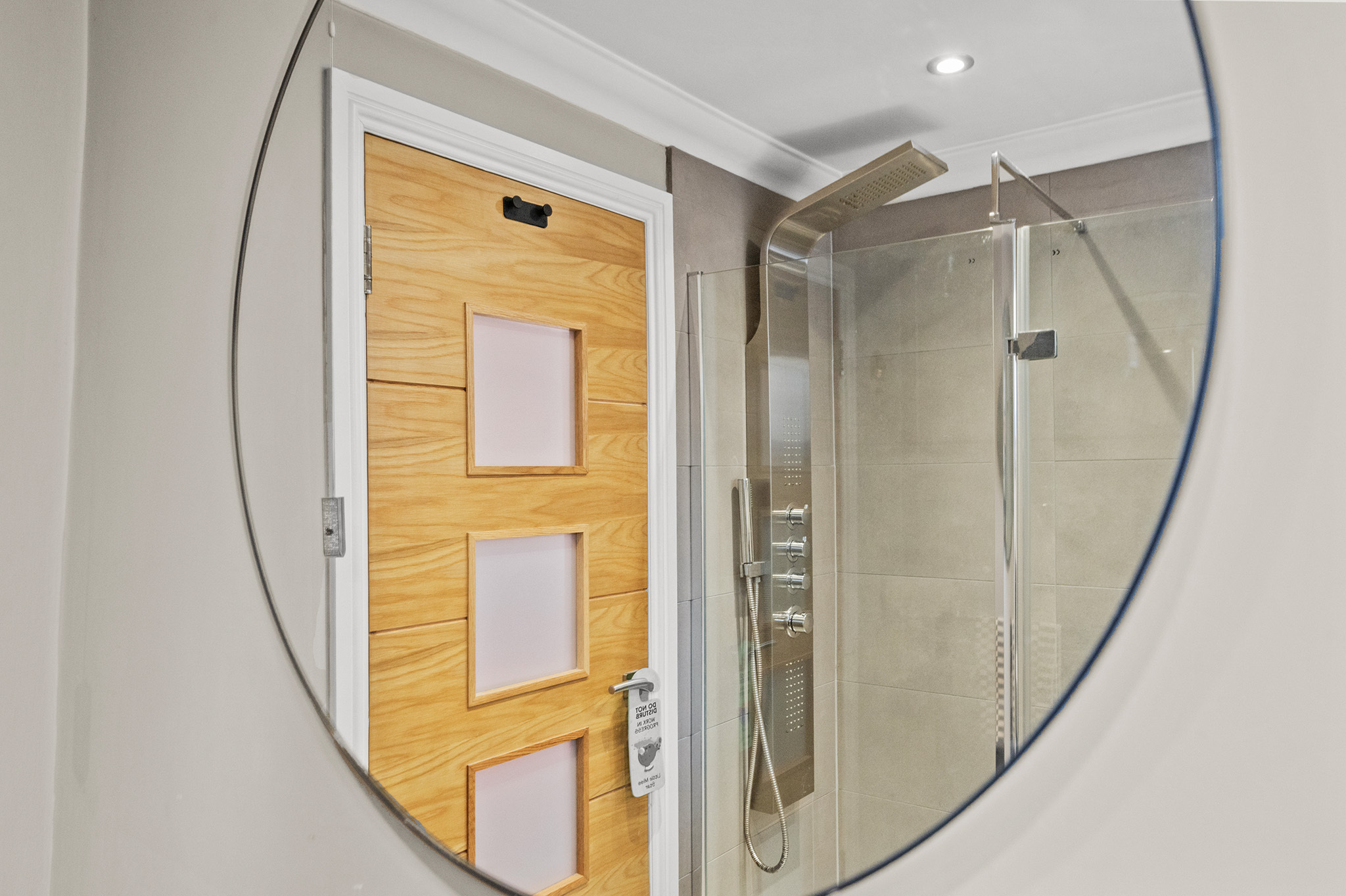 Stepping inside, you are welcomed by a spacious and elegantly designed lounge, seamlessly leading to a brand-new contemporary kitchen fitted with high-end appliances and sleek cabinetry. The property boasts two generously sized double bedrooms, offering comfort and versatility, while the stunning newly installed shower room completes the accommodation with a touch of luxury.