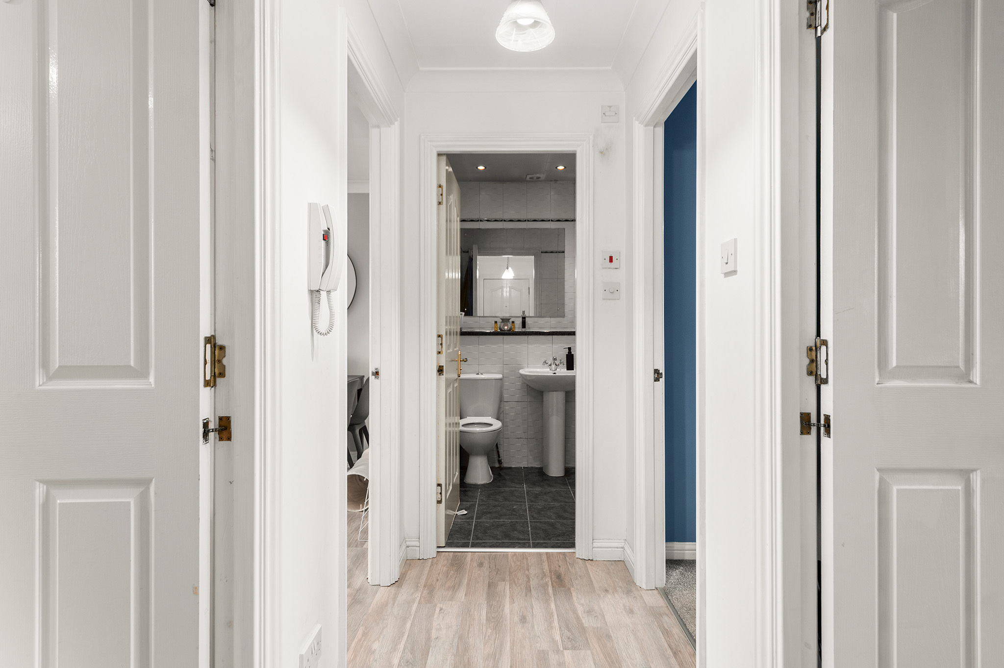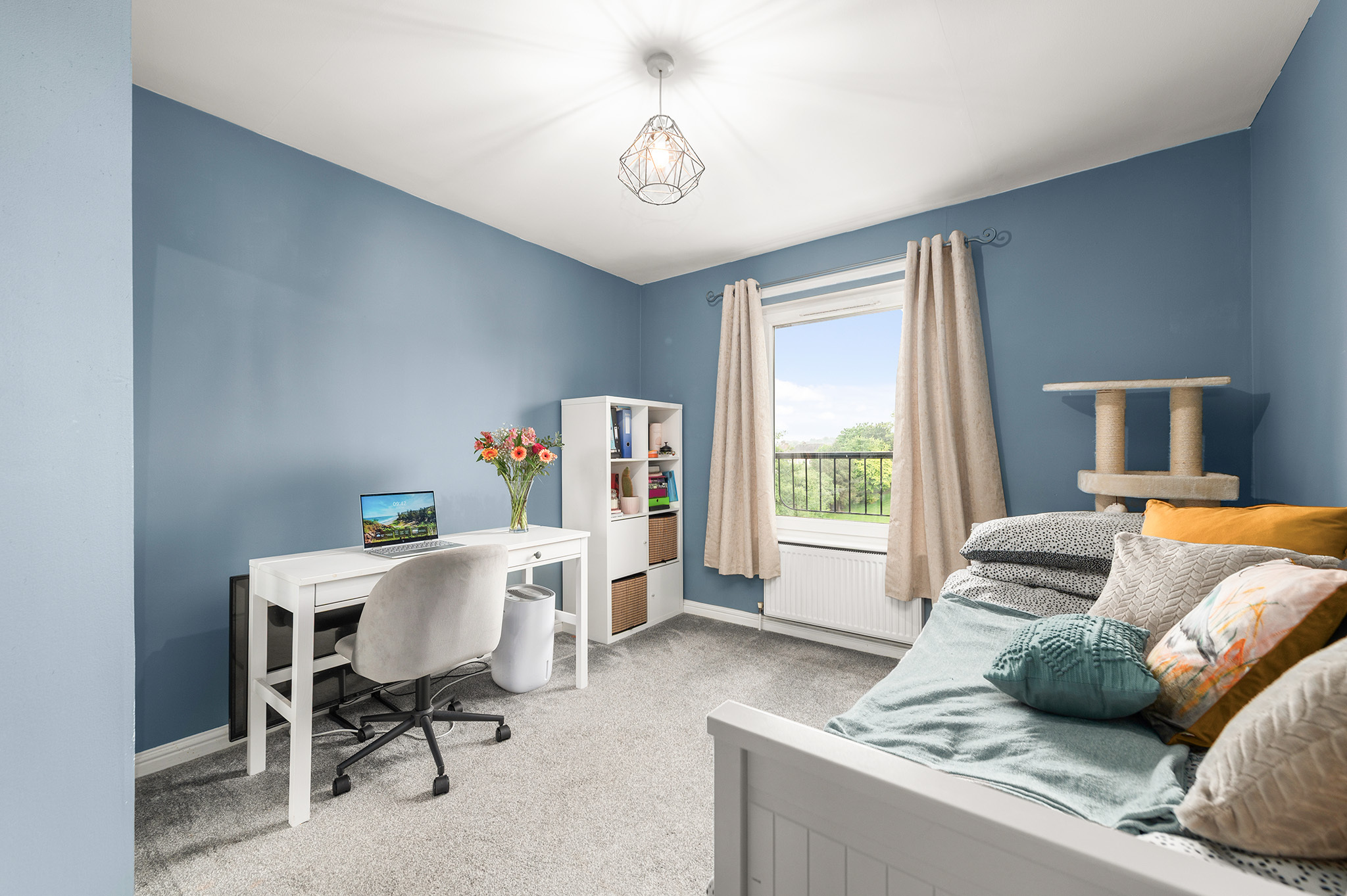 Set within a well-maintained development, the property enjoys immaculate communal areas and a spacious car park with allocated and visitor parking. To the rear, a large open green space provides a peaceful outlook, enhancing the sense of space and privacy. Whether enjoying the front-facing panoramic views over Falkirk or the tranquil green area at the rear, this apartment offers exceptional dual-aspect outlooks.