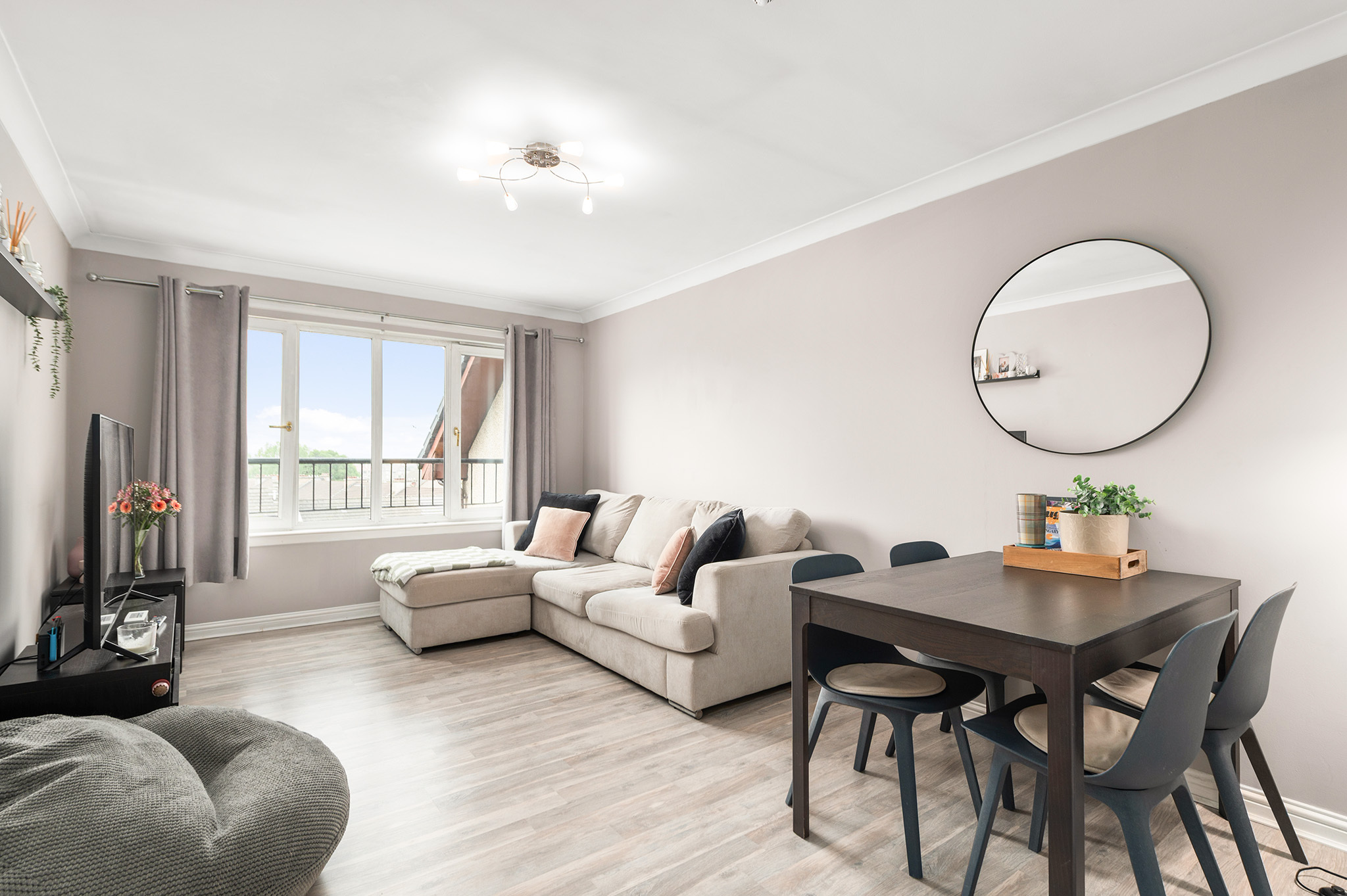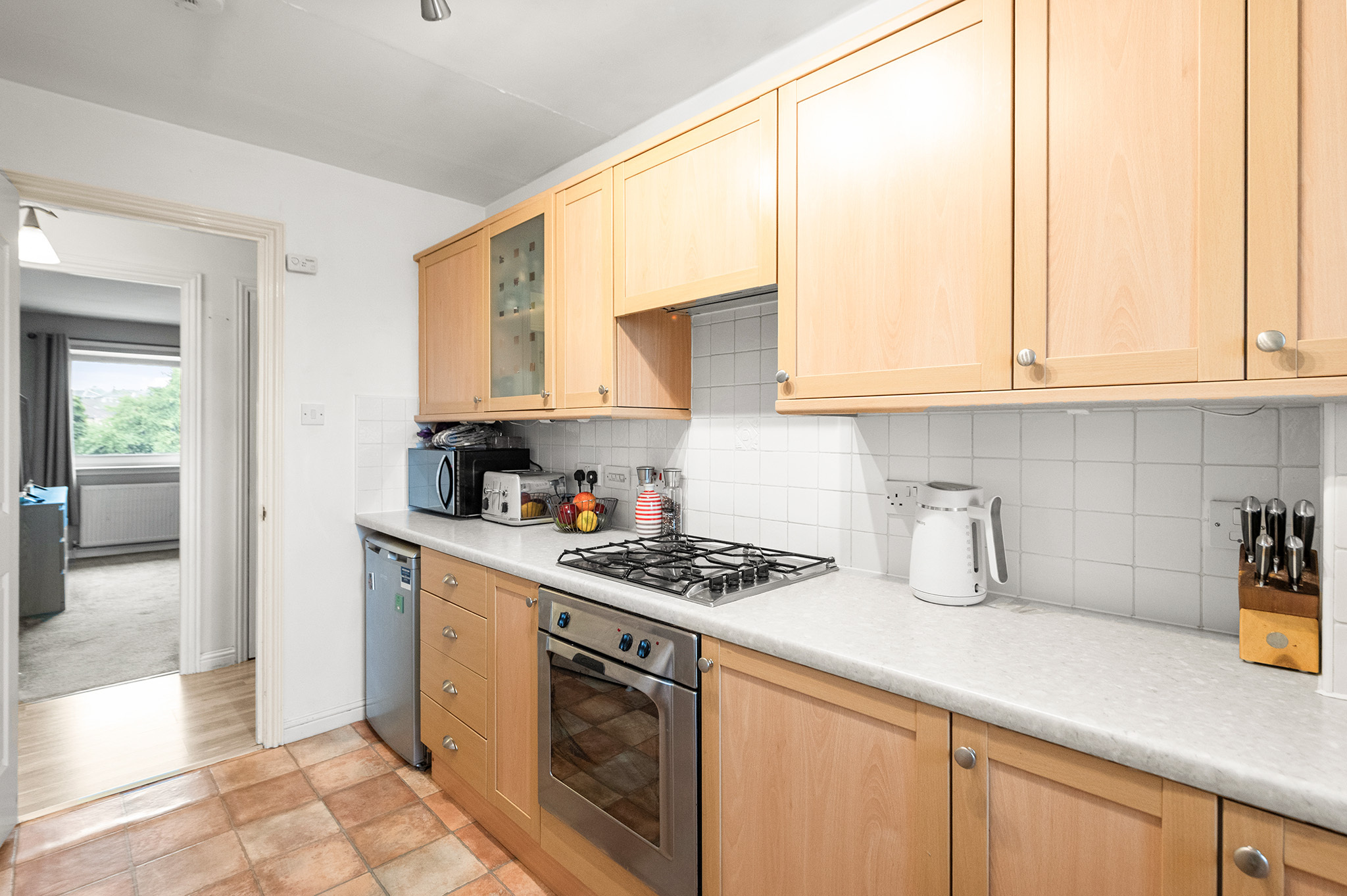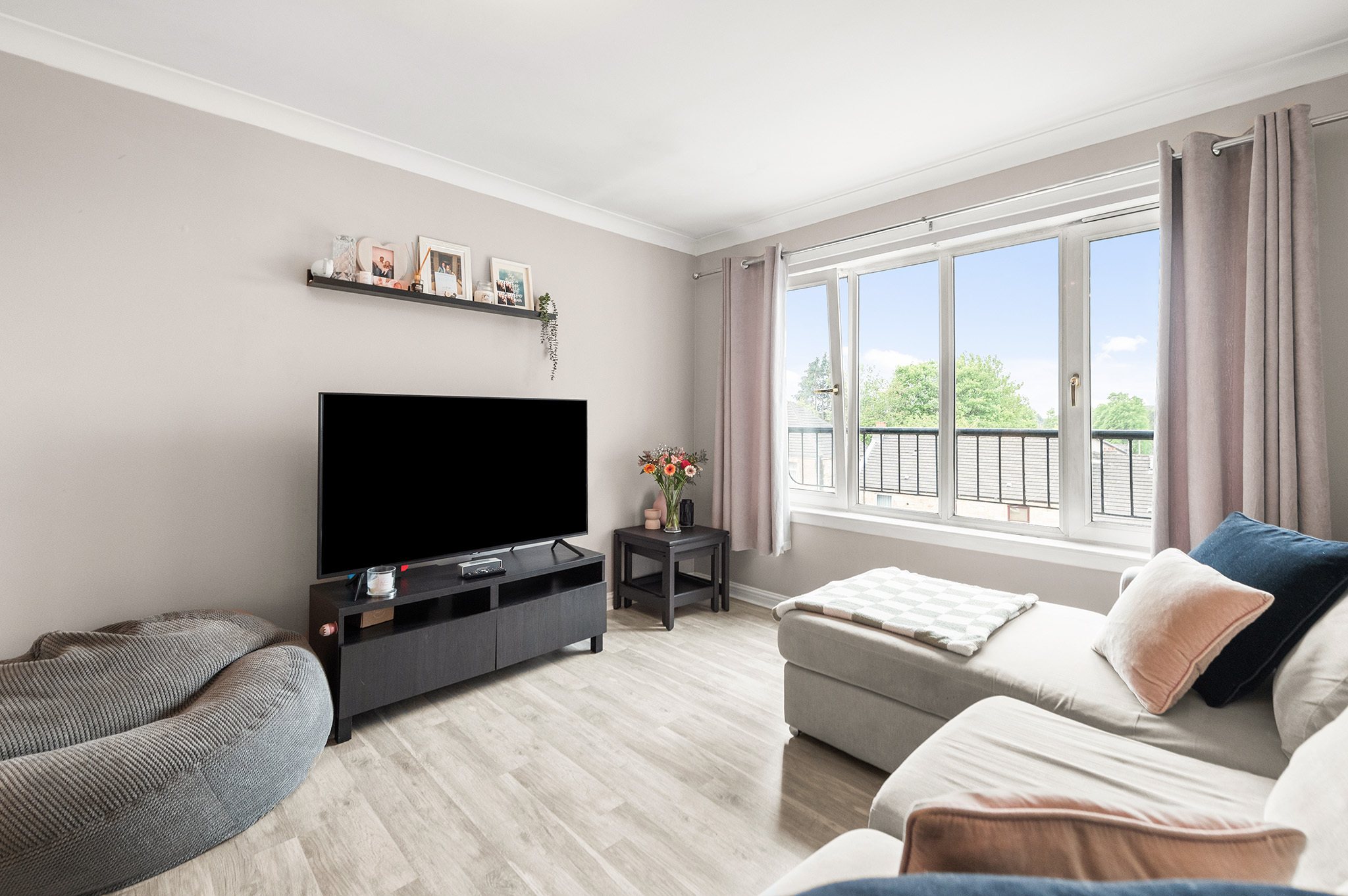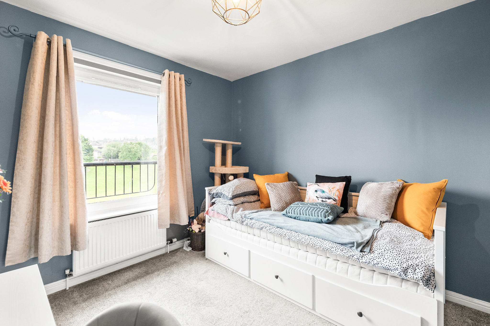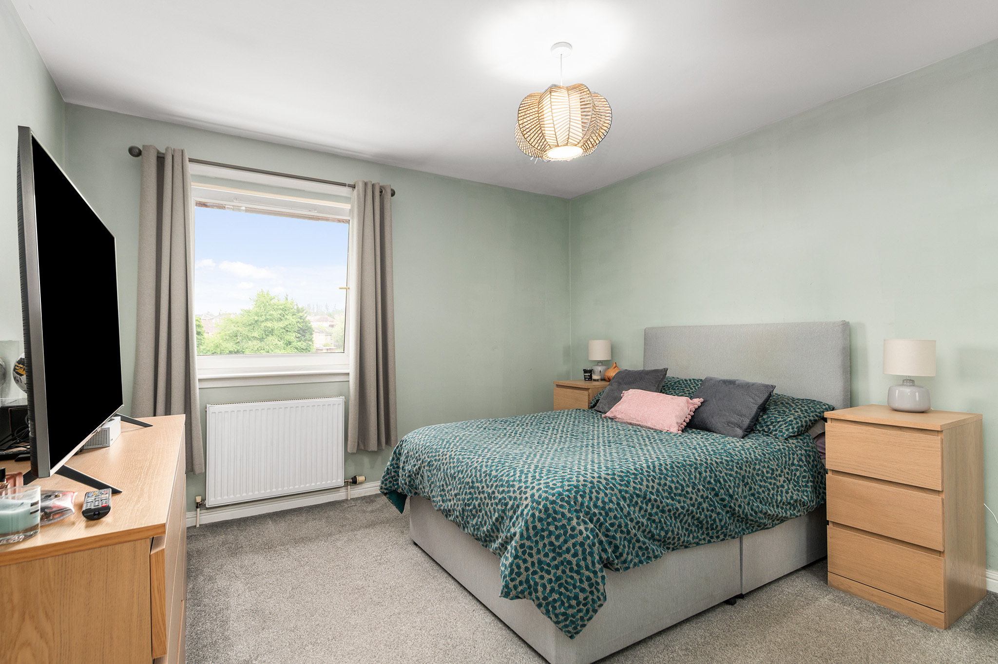 As you enter, you're welcomed into a bright and generously sized lounge diner, bathed in natural light and offering elevated views across Falkirk and towards Victoria Park. The well-appointed kitchen is thoughtfully laid out, providing ample storage and worktop space, perfect for modern living. Two double bedrooms offer excellent proportions and built-in storage, while a smart bathroom with shower over bath completes the accommodation.