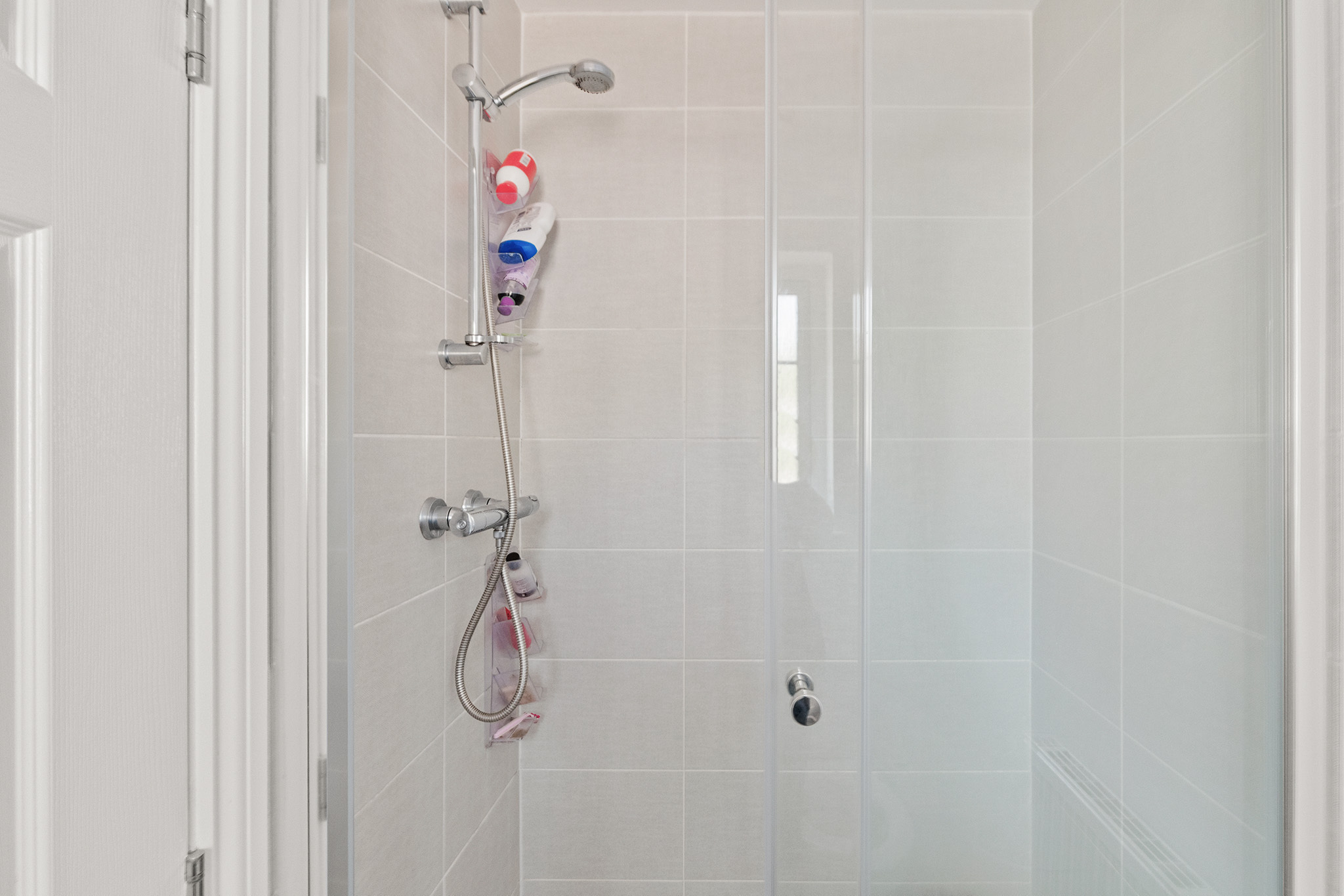 Luxurious primary bedroom featuring a modern en-suite shower room and fitted wardrobes.