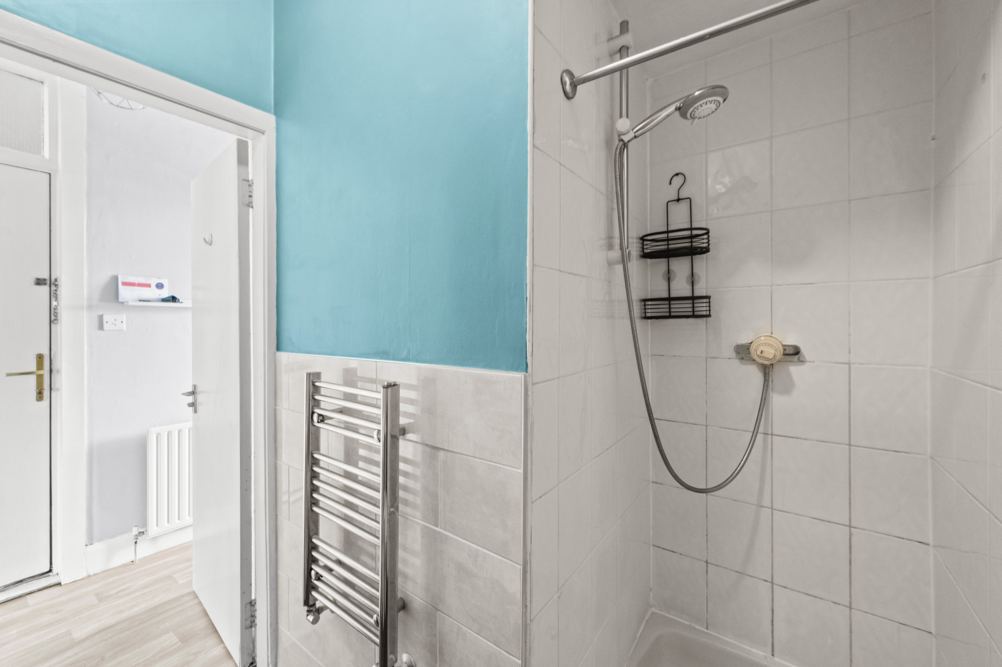 Modern shower room with walk-in enclosure and contemporary fittings