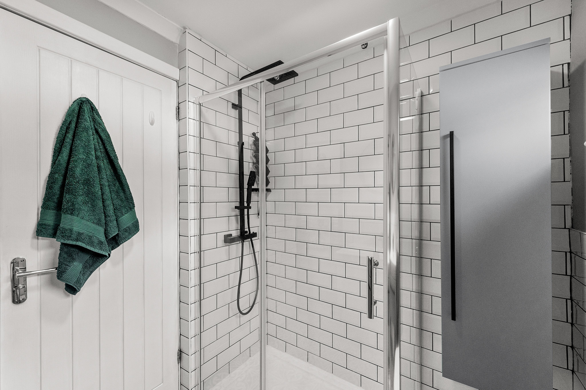 Stylish and modern shower room with high-quality fixtures and sleek finishes.