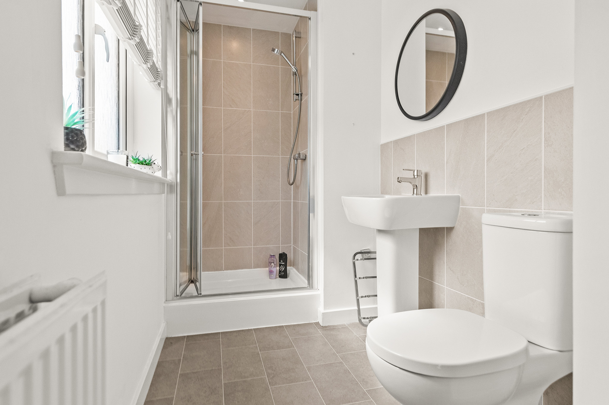 Primary bedroom benefits from a sleek en-suite shower room