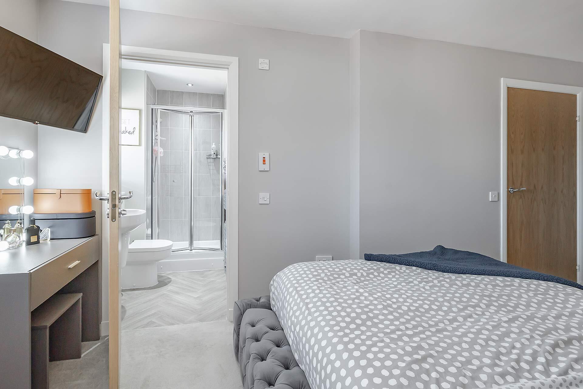 Master bedroom benefits from sleek en-suite shower room and built-in double wardrobes.