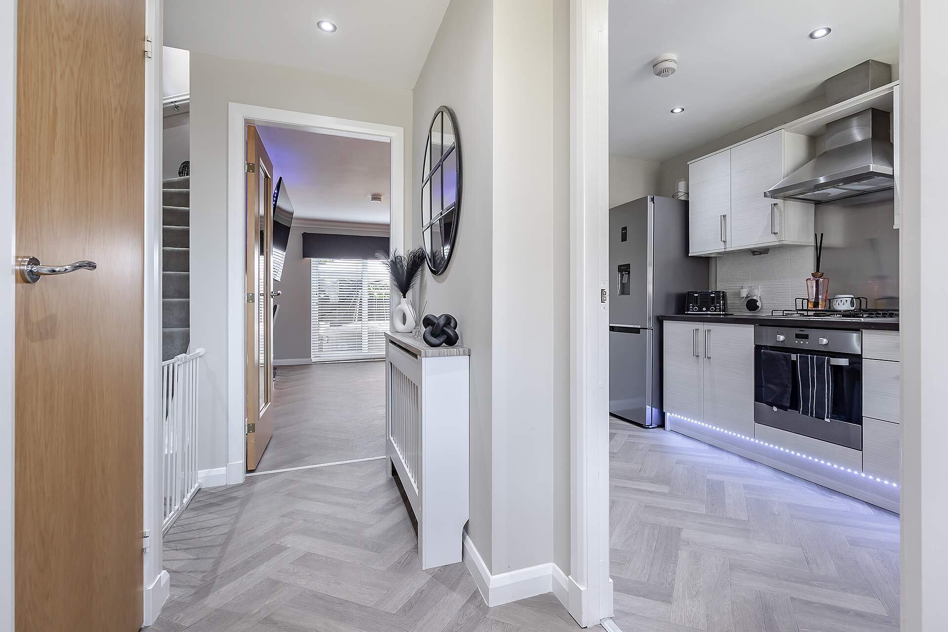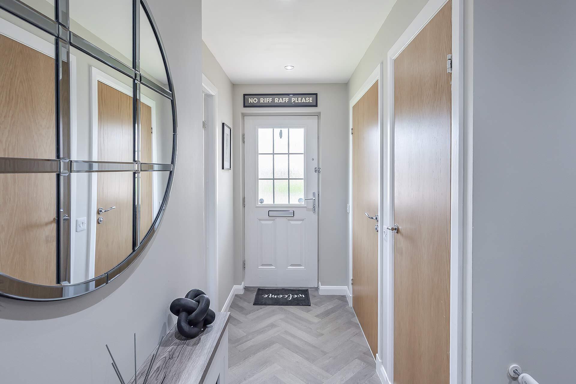 Bright and welcoming entrance hallway with large storage cupboard and contemporary downstairs WC.