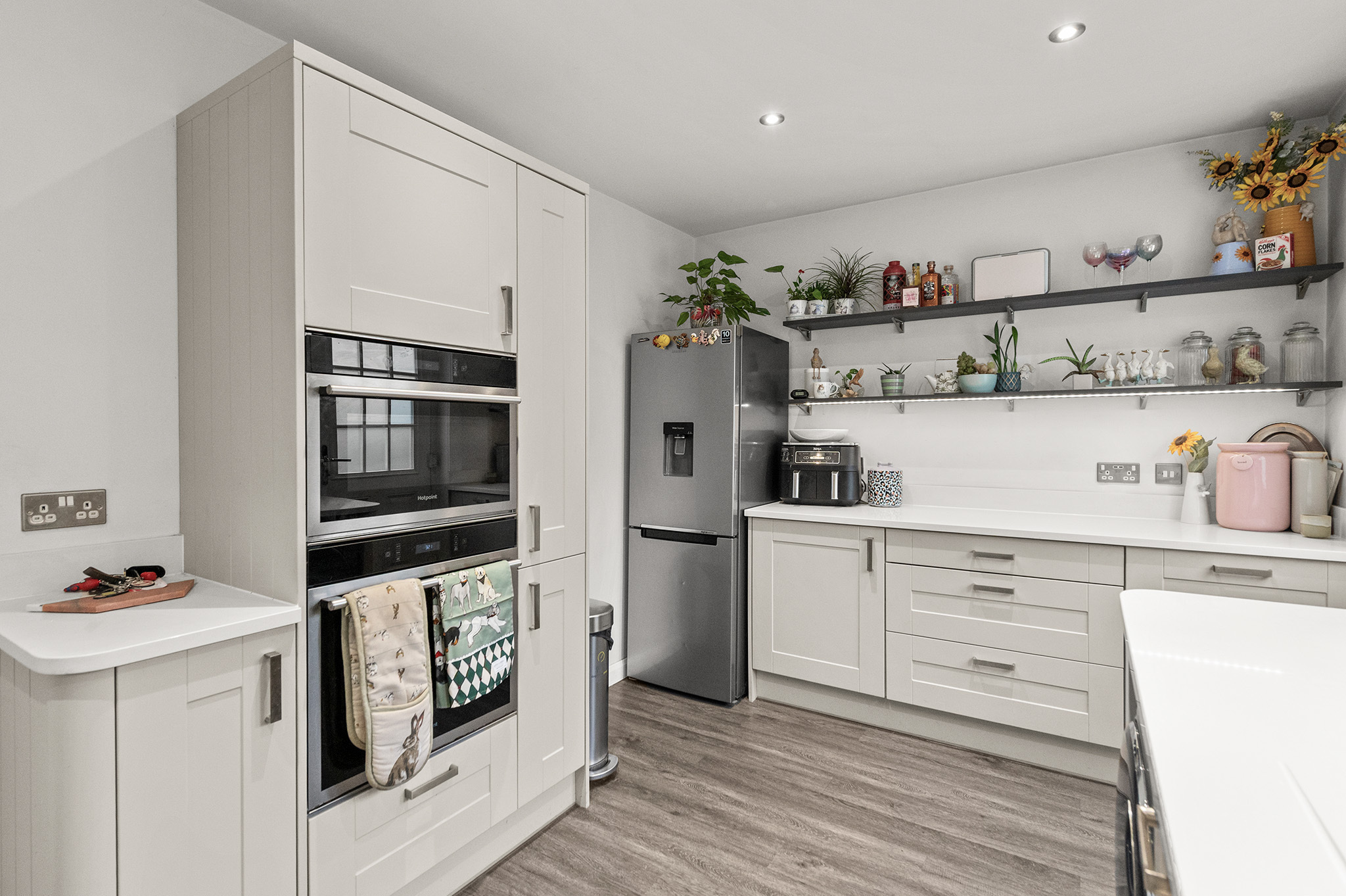 Stylish new breakfasting kitchen, beautifully finished with modern fittings, ample storage, and workspace.