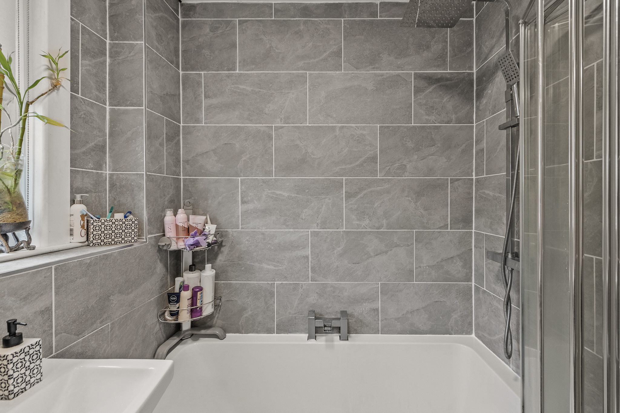 Stunning contemporary family bathroom, upgraded to a high standard with quality fixtures and fittings.
