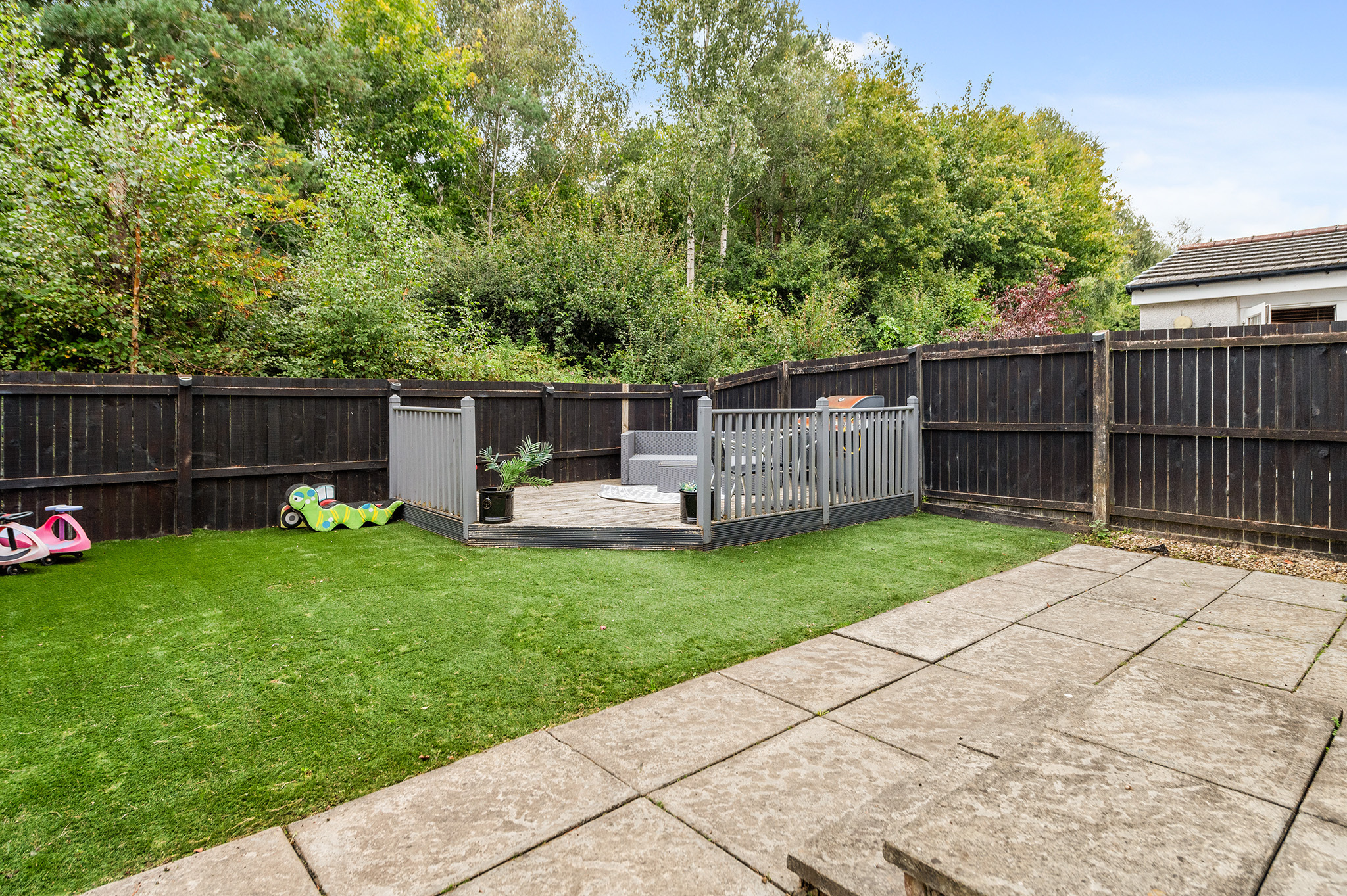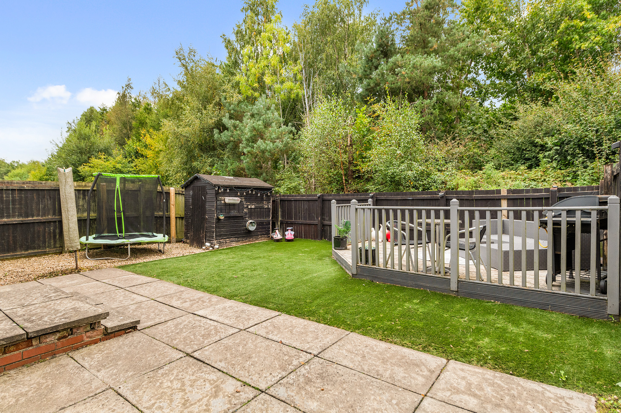 Private rear garden featuring a slabbed patio, decking area, and artificial turf, perfect for outdoor entertaining and low-maintenance living.