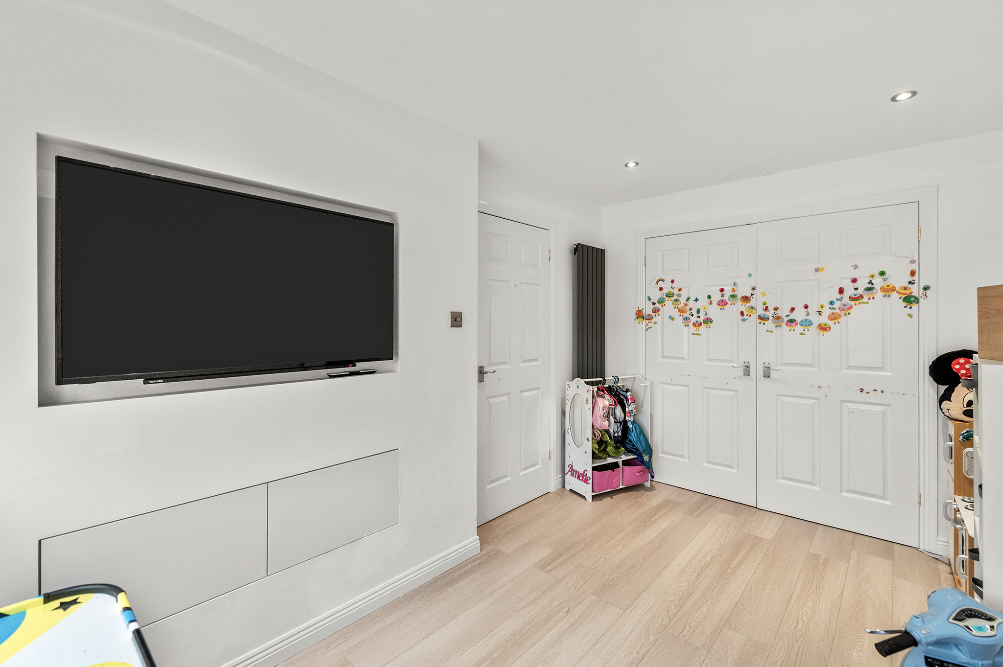 Exceptionally large primary bedroom, complete with fitted storage and sleek en-suite shower room.