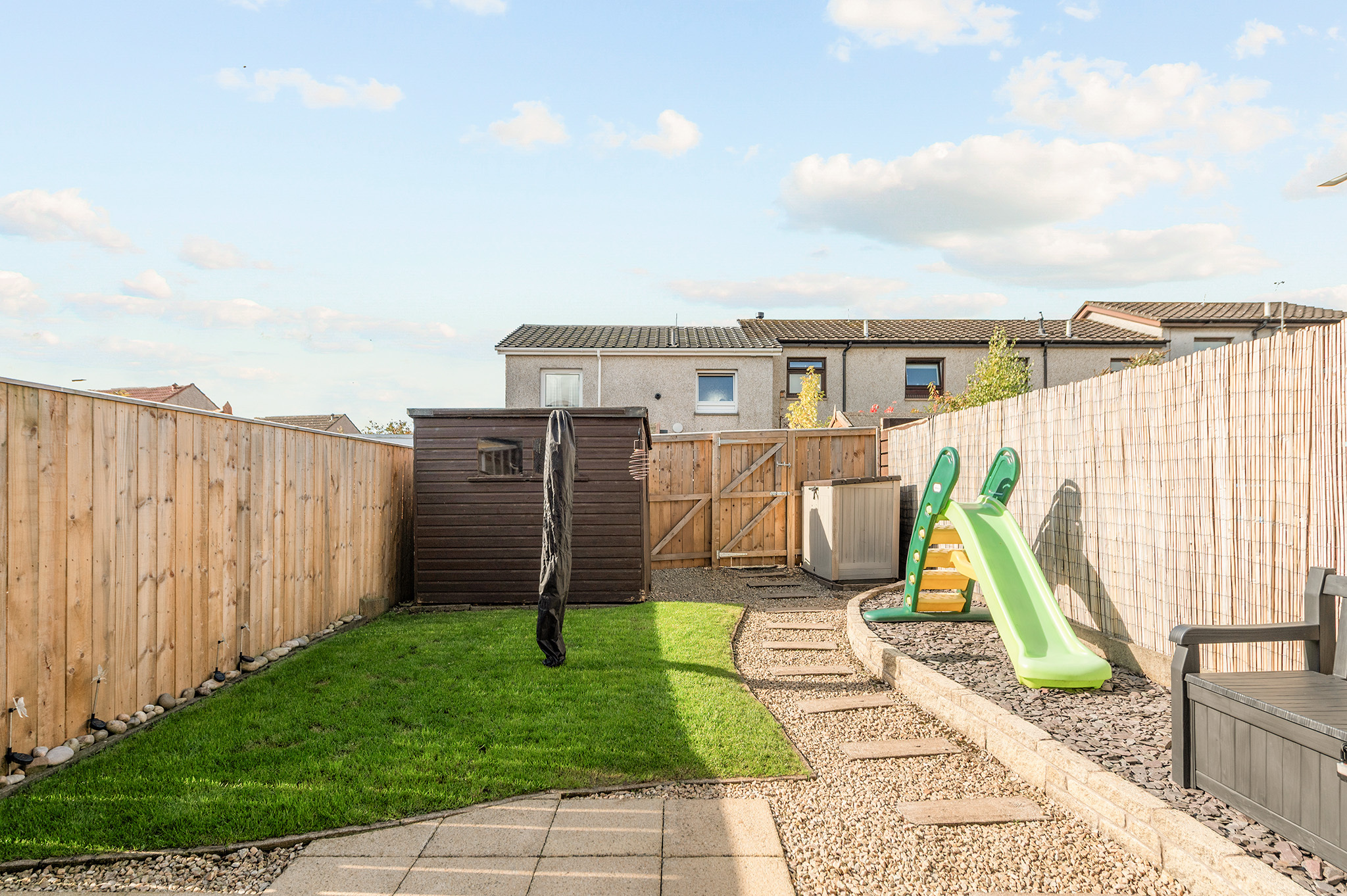 West-facing rear garden, enjoying excellent afternoon and evening sun, perfect for outdoor relaxation.