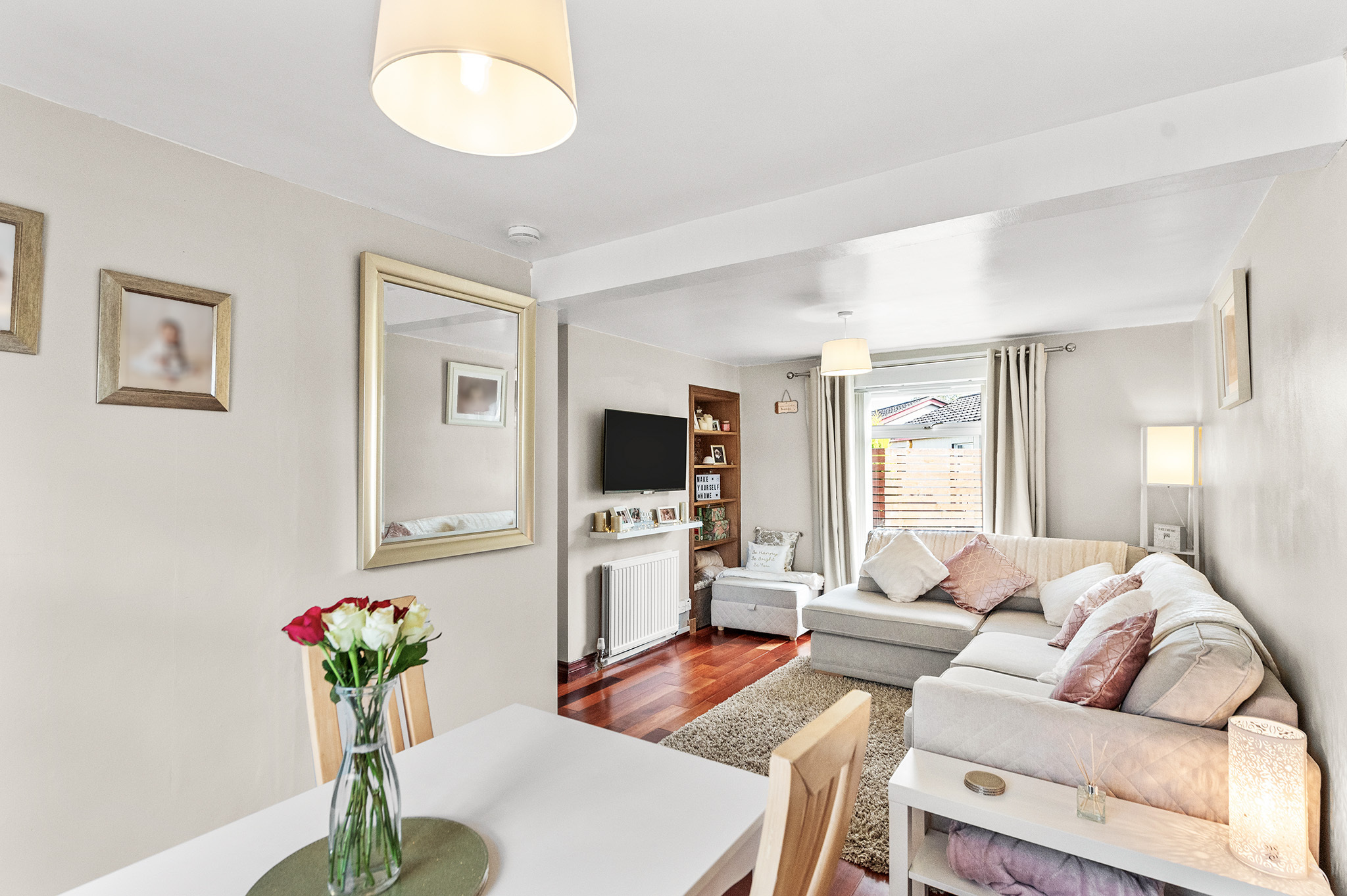 Bright and spacious lounge/diner with dual-aspect windows, flooding the room with natural light.