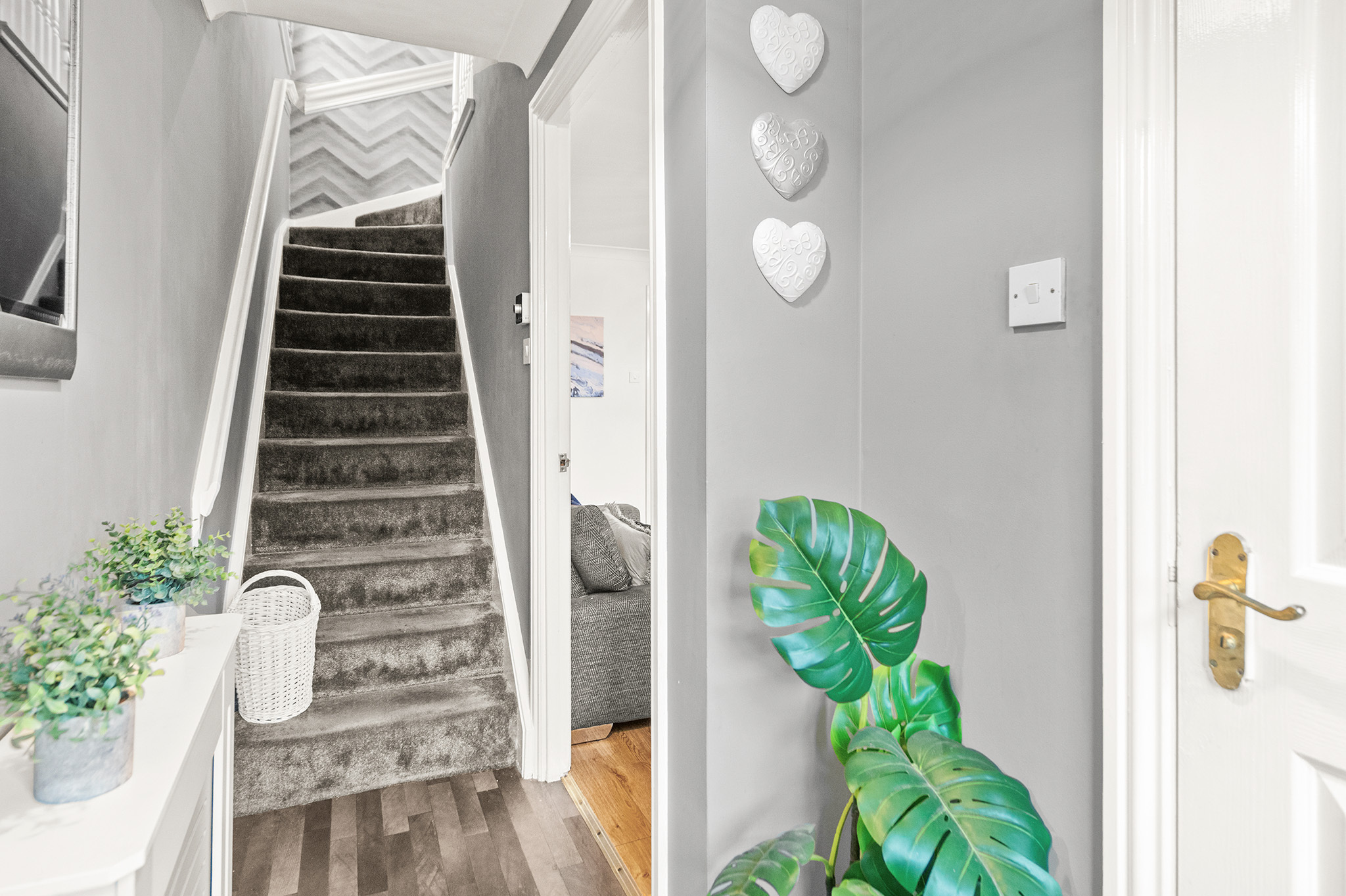 Front garden laid to lawn, enhancing the property’s attractive kerb appeal.