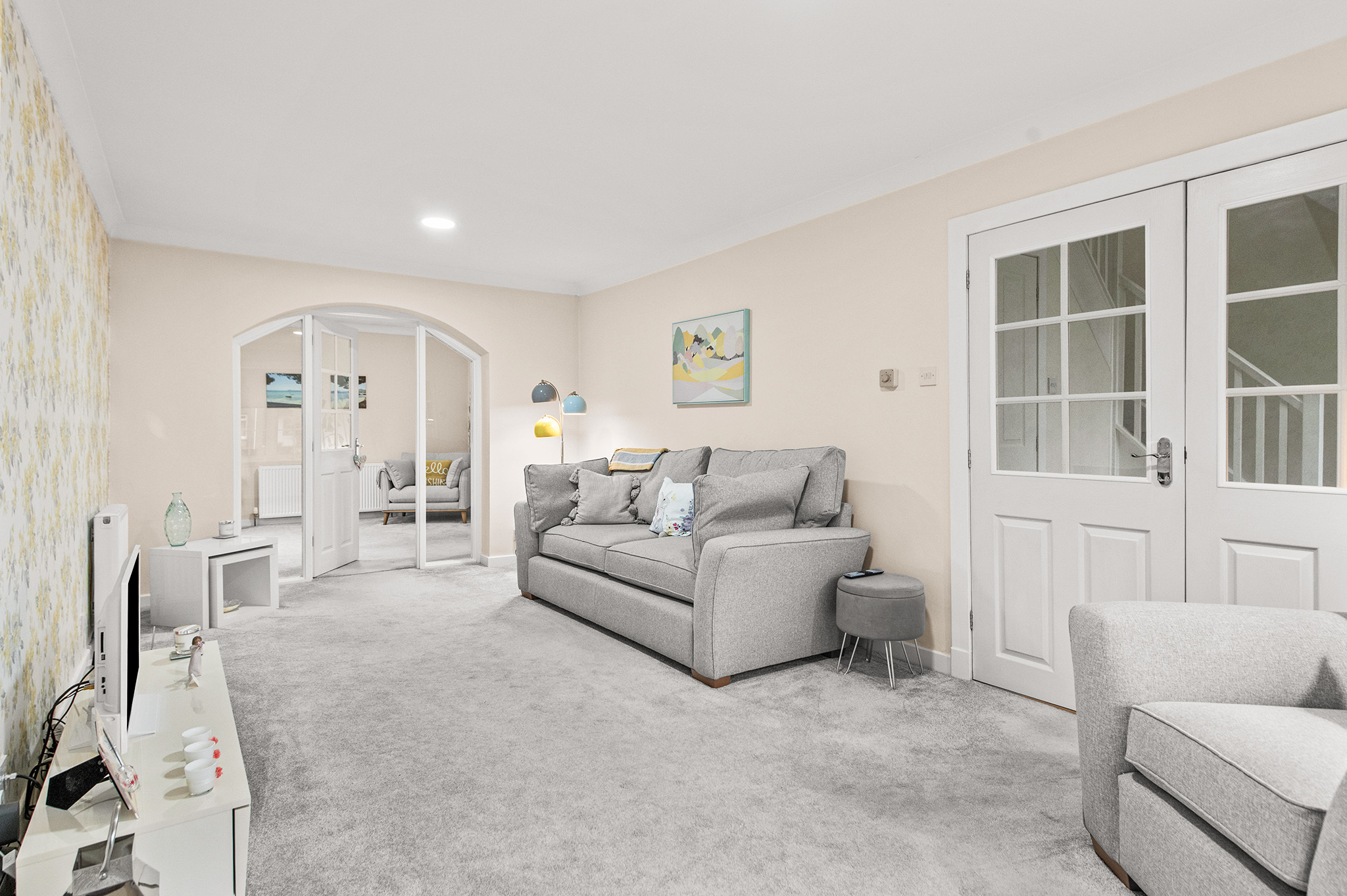 Generous dining/family room with French doors opening onto the rear garden, ideal for entertaining or relaxed family living.