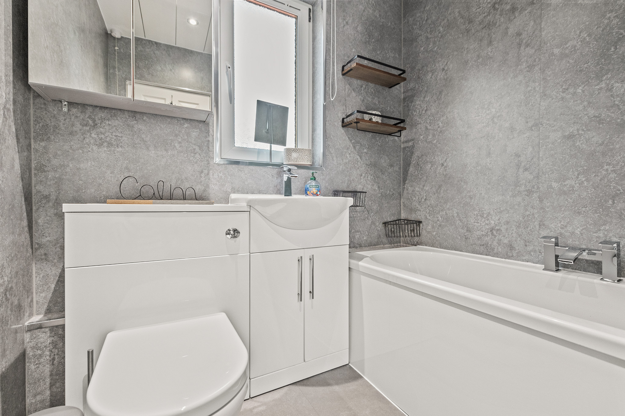 Three generously sized bedrooms, each tastefully decorated and offering flexible use for families, home working, or guest accommodation.