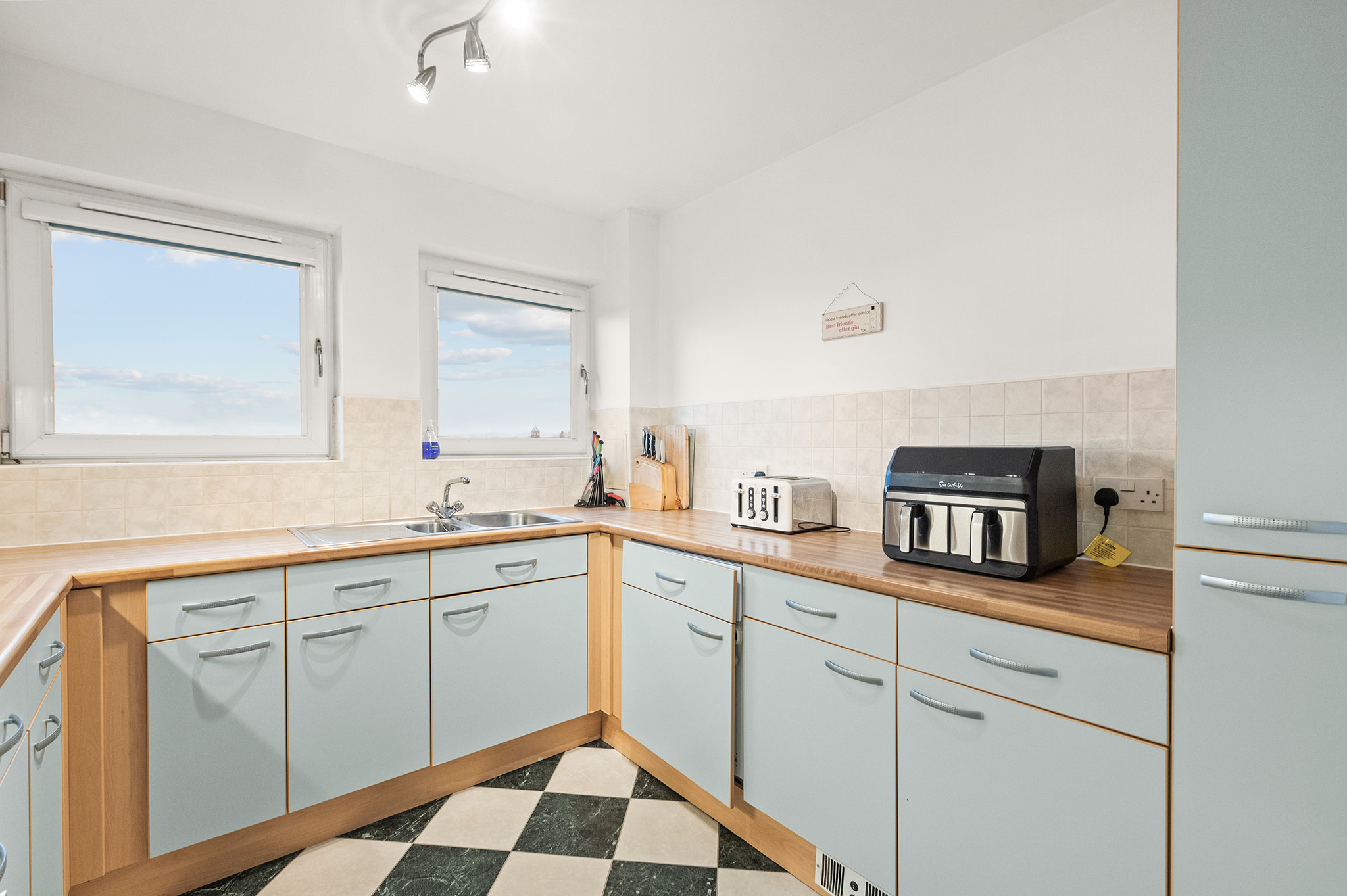 The well-appointed kitchen is both practical and stylish, benefiting from ample workspace, generous storage, and excellent natural light.