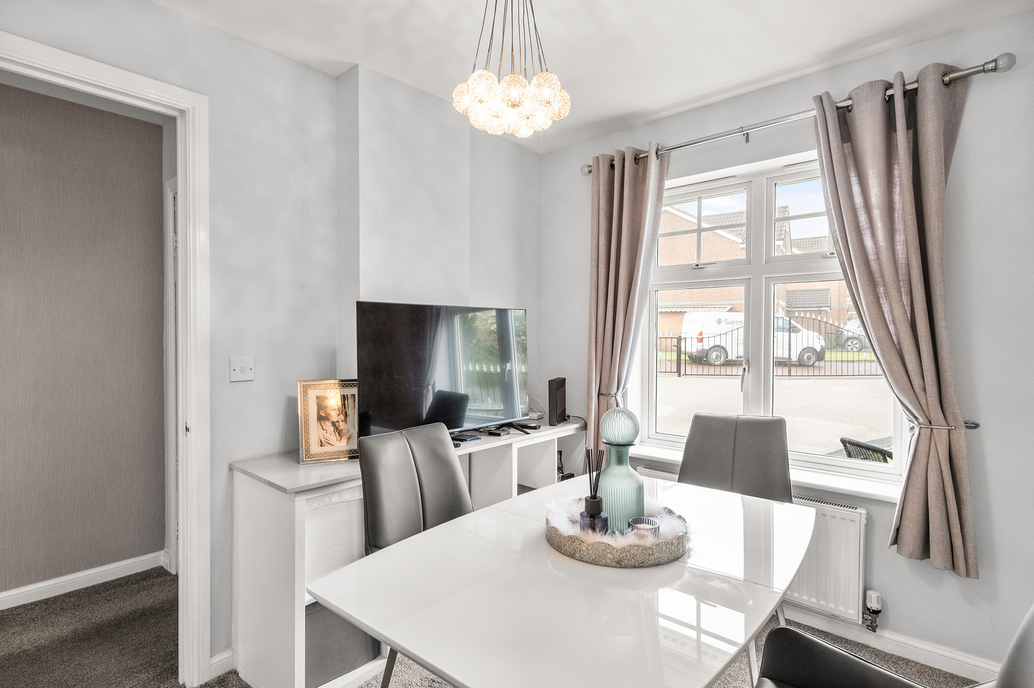 The property enjoys impressive kerb appeal, enhanced by attractive metal fencing and gated access leading to a stunning resin driveway, providing ample off-street parking for multiple vehicles.