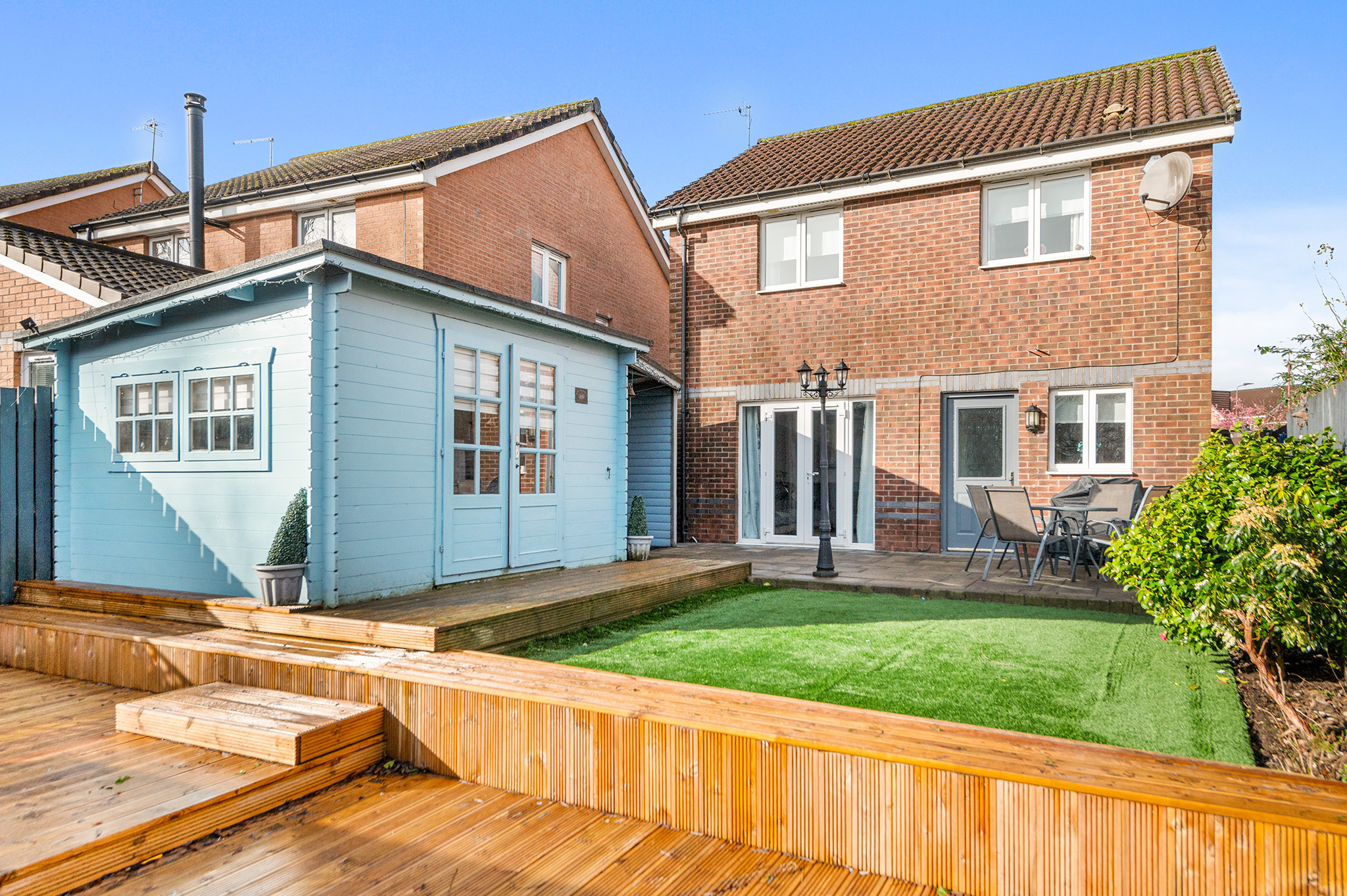 Beautiful landscaped garden with patio, decking & artificial turf