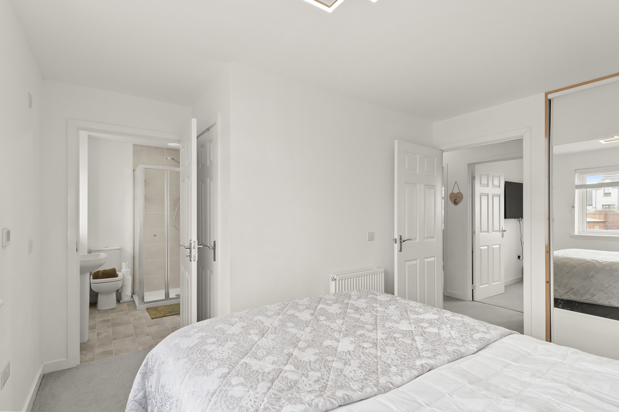 Impressive primary bedroom featuring a sleek en-suite shower room.
