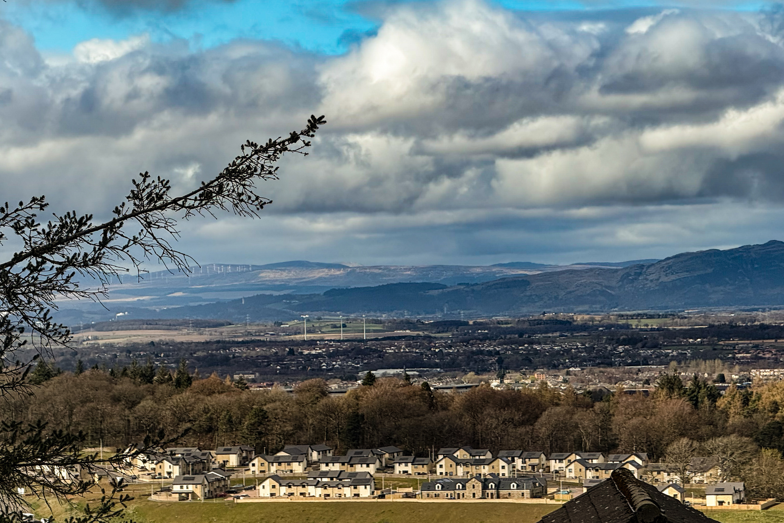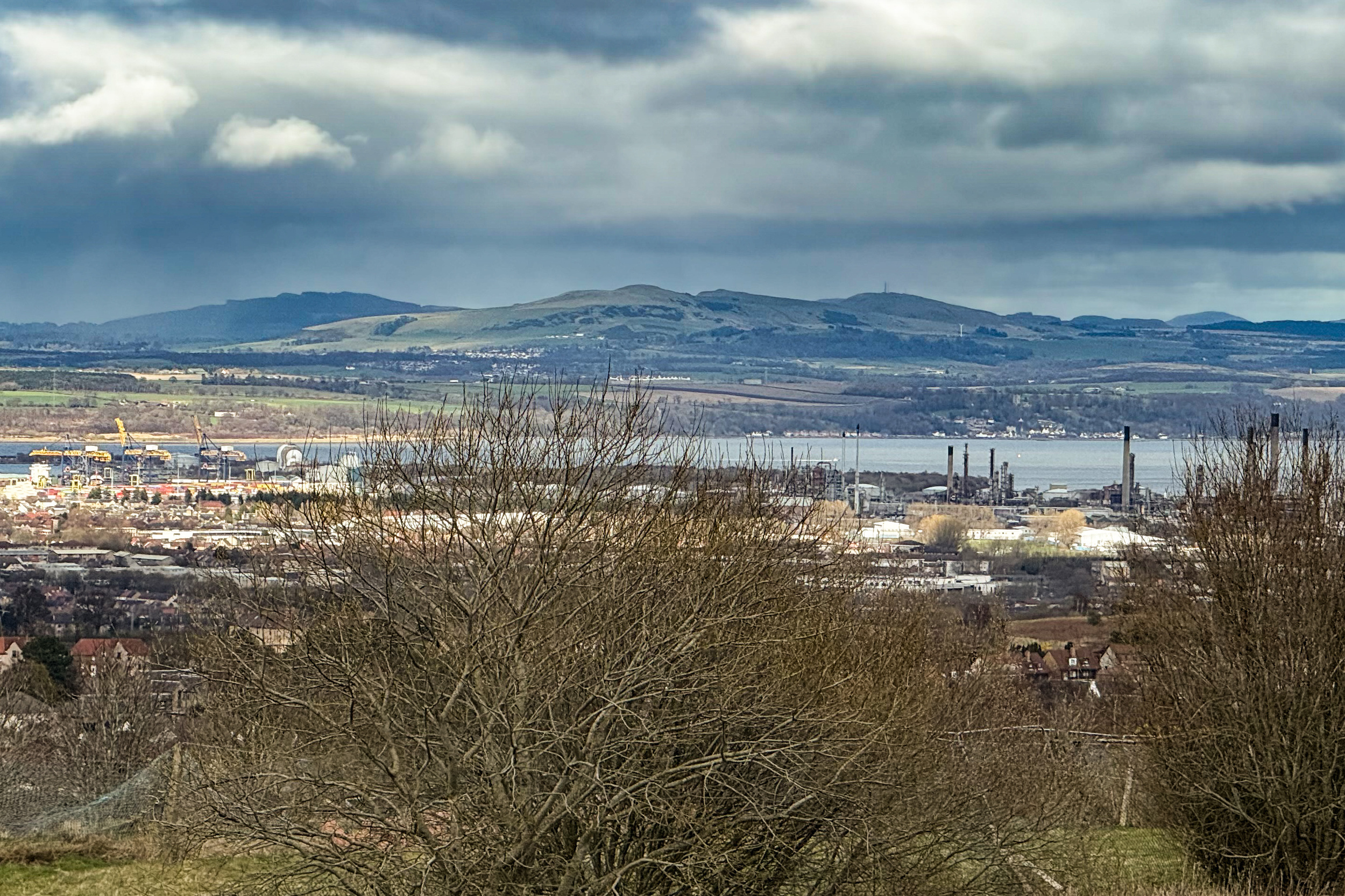 Stunning elevated views across the River Forth, Falkirk, and towards the Ochil Hills